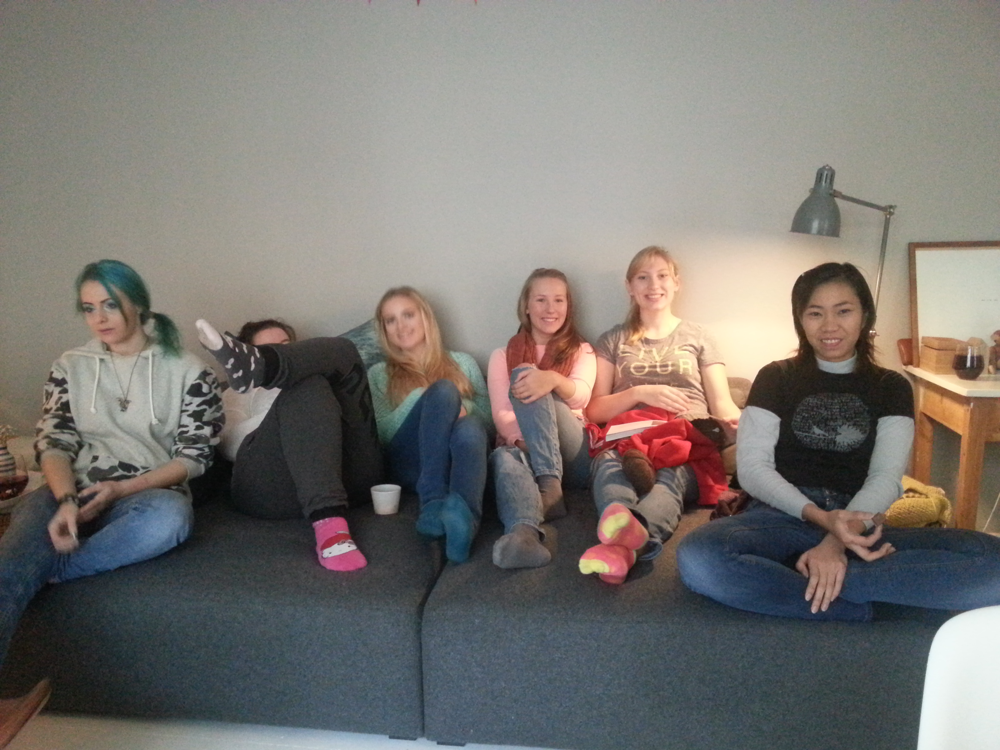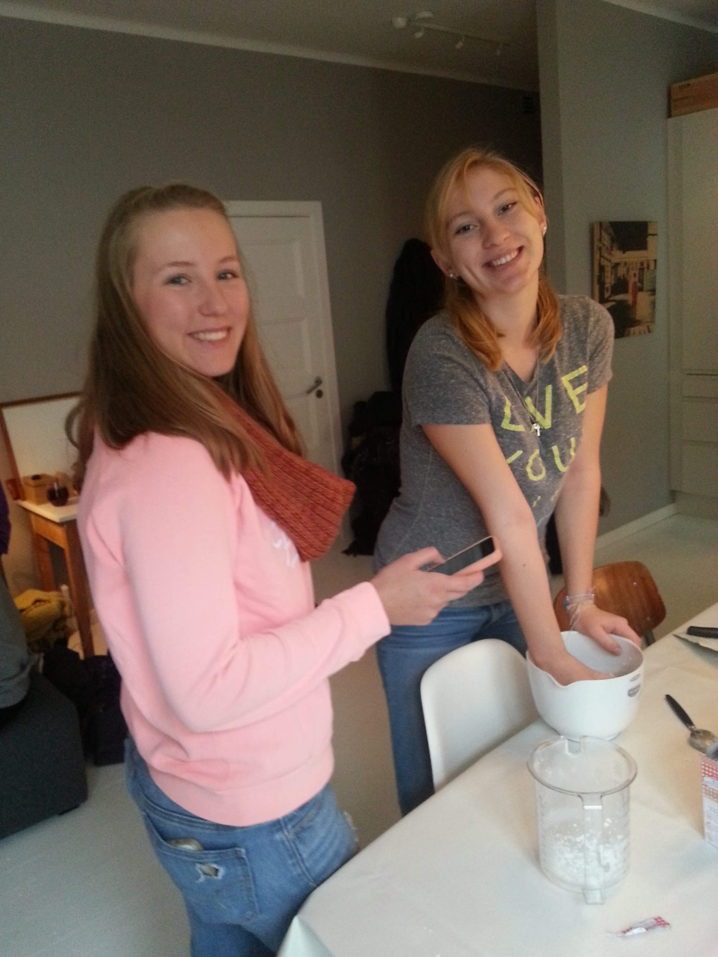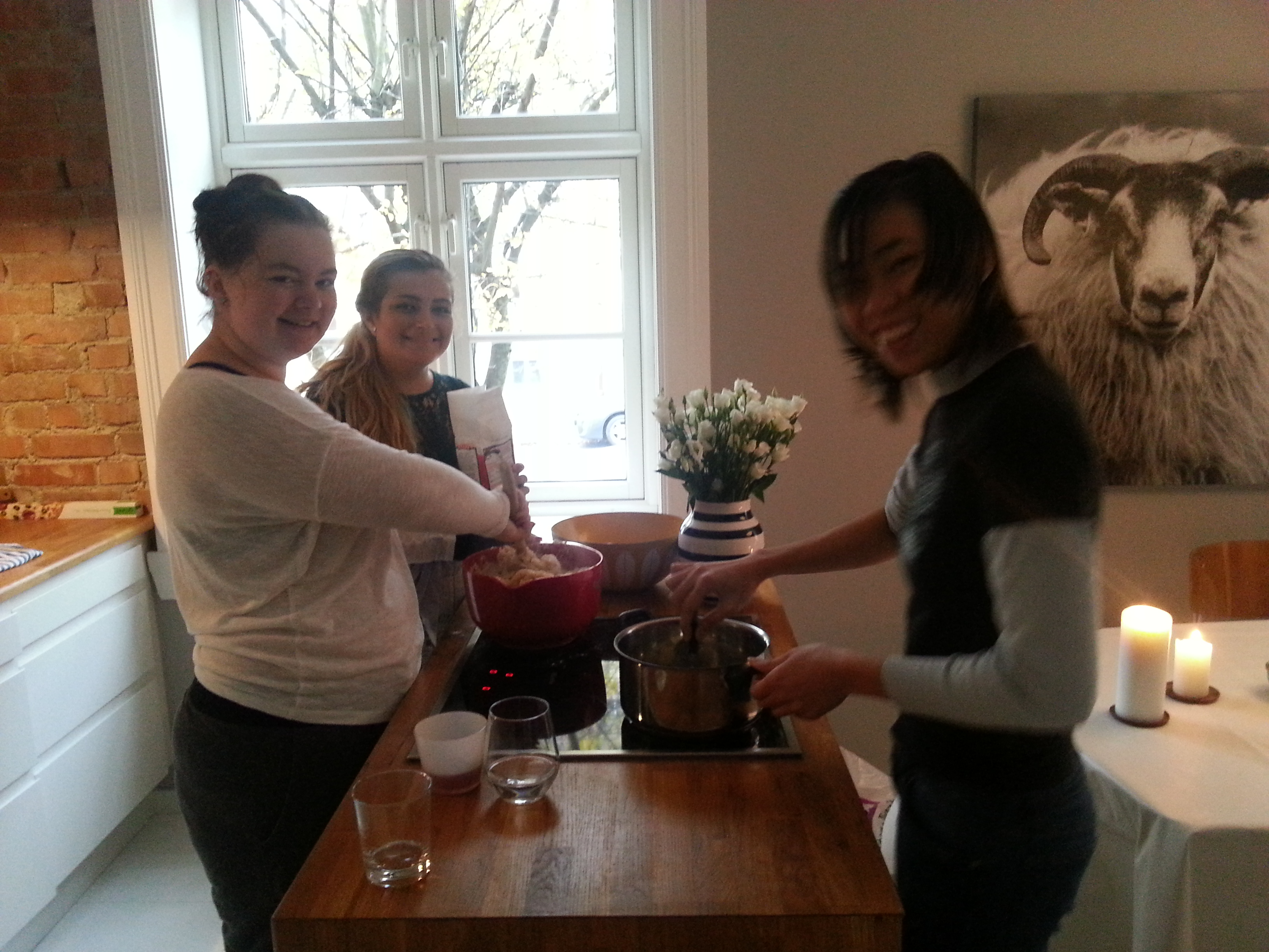 I går avsluttet vi våre to første linjeuker med bollebaking(og bollespising) hjemme hos Malene. I ovnen har vi følgende produkter: glutenfrie boller, boller med rismelk, boller med sjokolade, boller uten sjokolade og boller med litt av hvert. Kort og godt noe for enhver. I bolleheve/bollesteke-pausene har vi strikket, spist godteri, kikket i dansebøker og Marie Helene Berglihn Bøe har arrangert fletteworkshop.