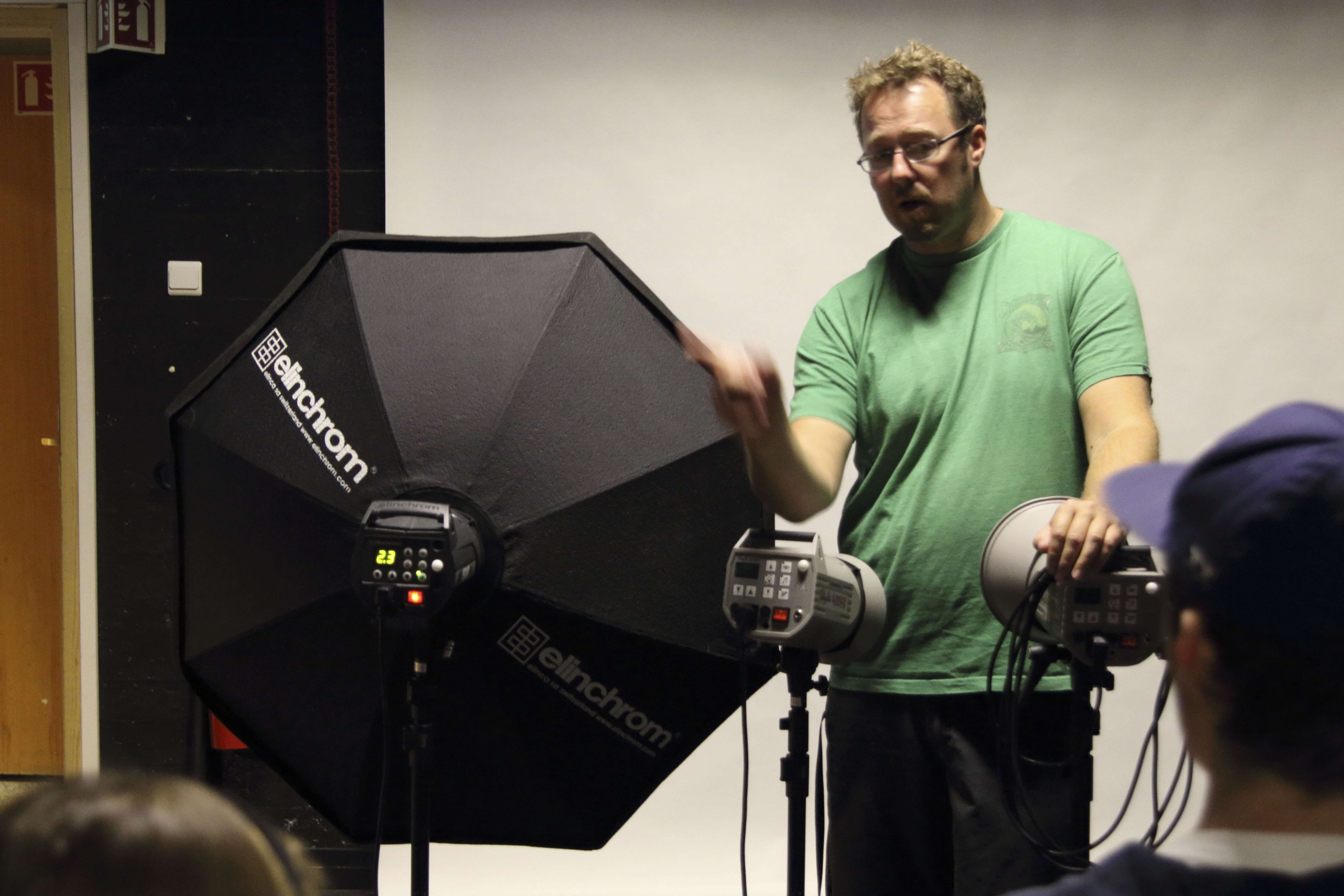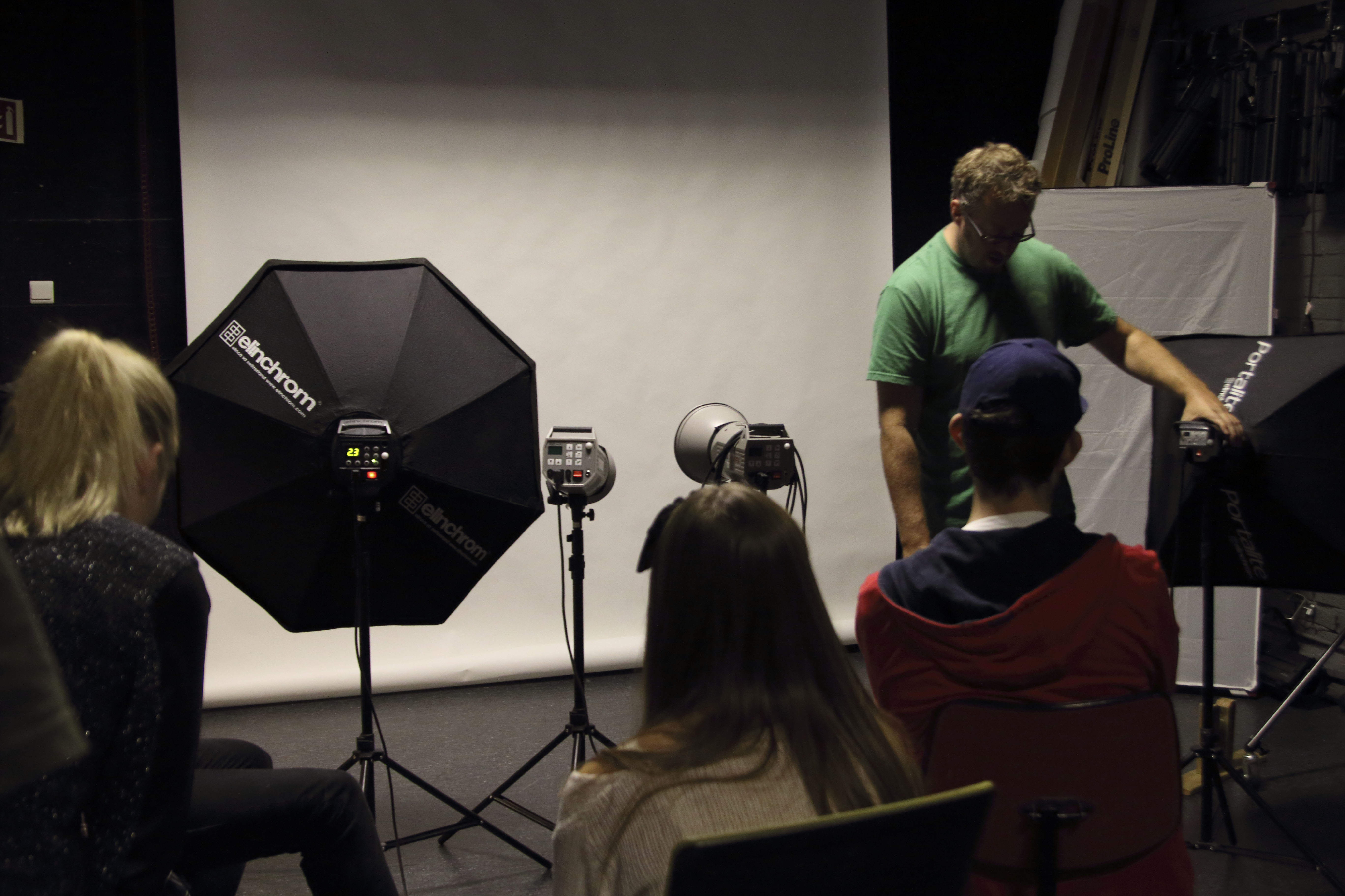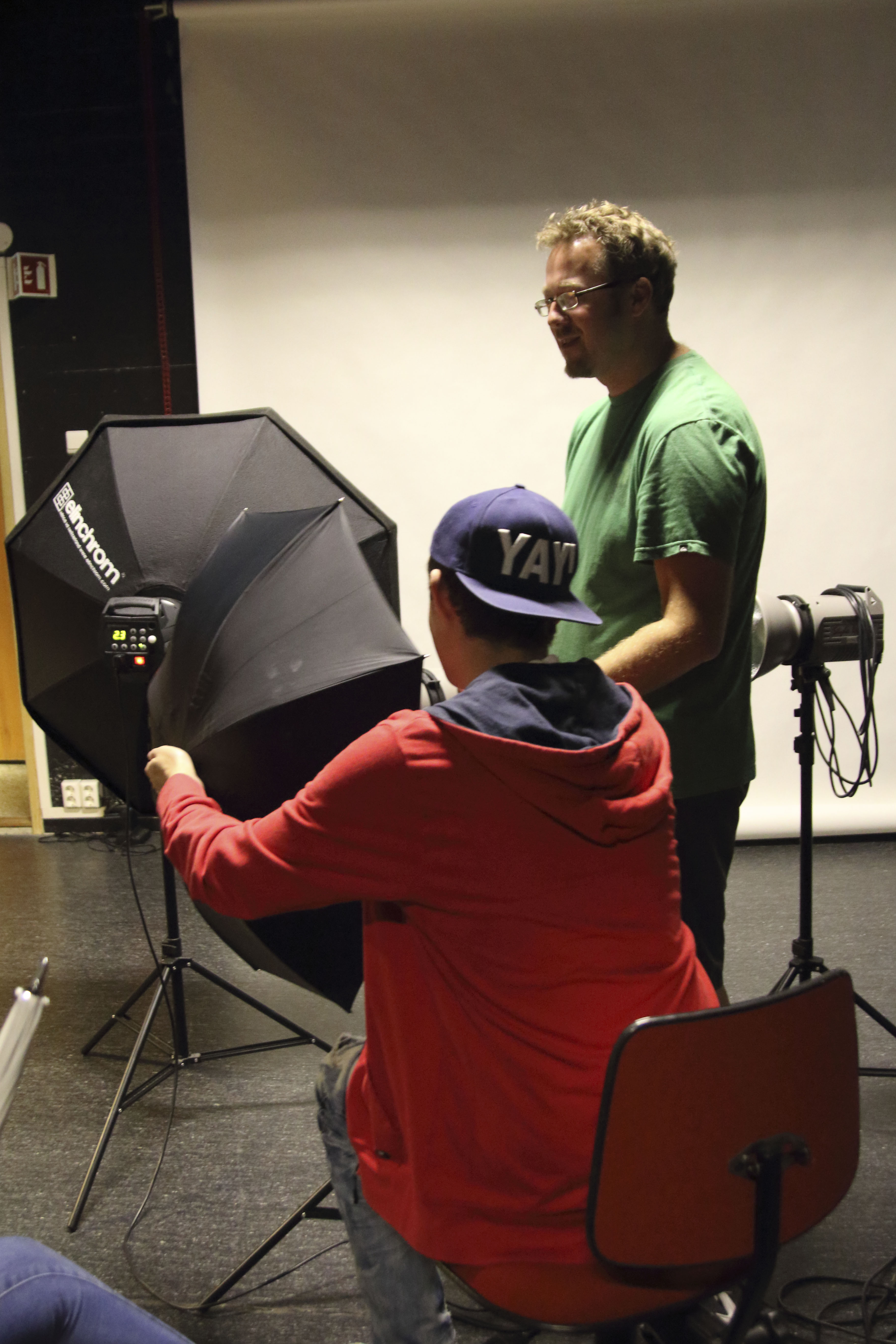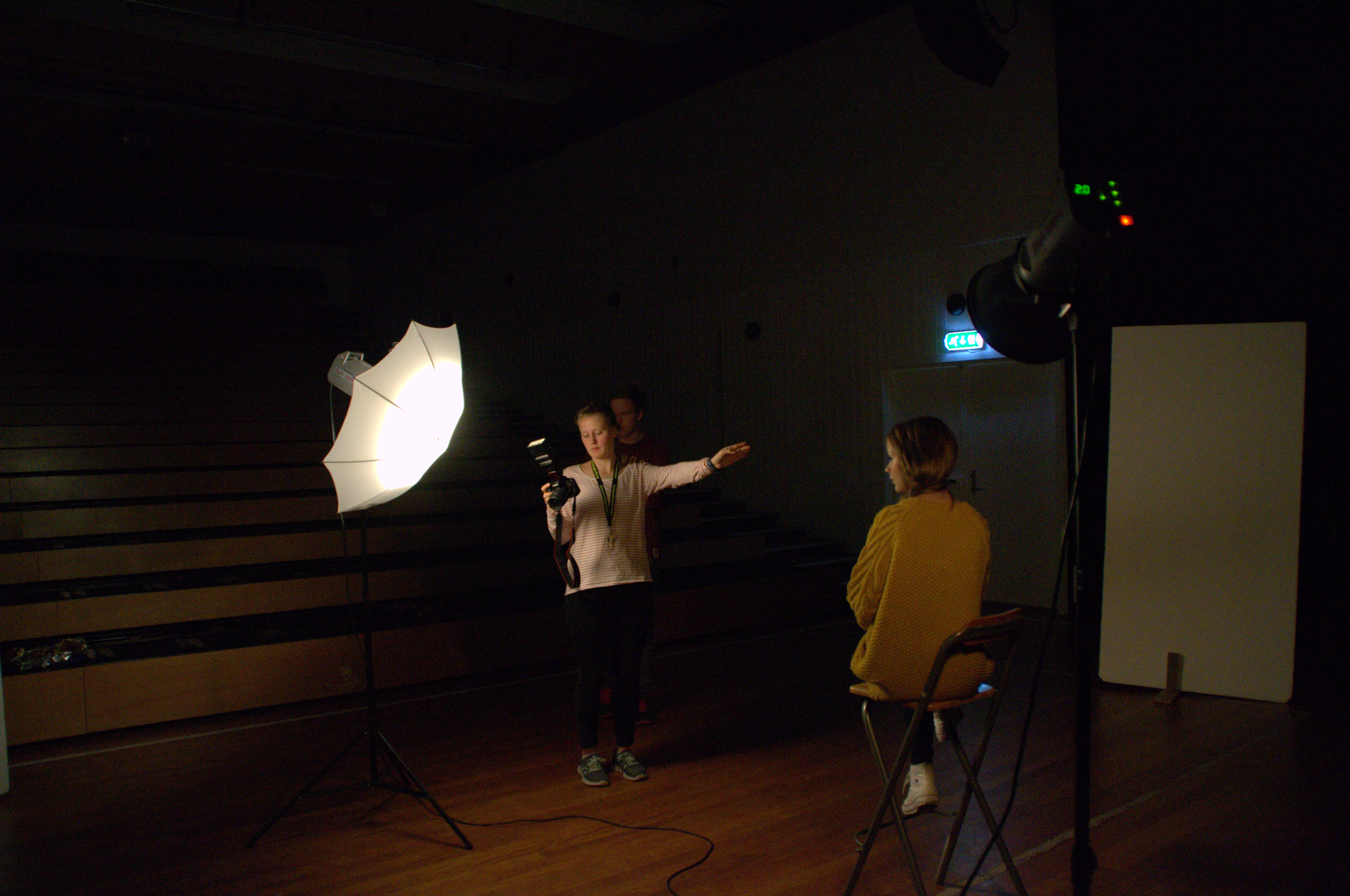 Denne uka har elevene på FotoVideo fått testet ut det å ta bilder i studio og funnet ut at det å ta bilder med rett lyssetting, ikke er så lett som man skulle tro. Elevene har fått innføring i det å måle lyset i forhold til kamera innstillingene, hvor plassering av lyset skal være, og hvordan de på rett måte kan bruke reflektor, isopor eller andre objekter som kan være med å styre lyset. De har fått det inn teoretisk gjennom undervisning, men også i praksis ved bruk av eget studio på Rønningen.