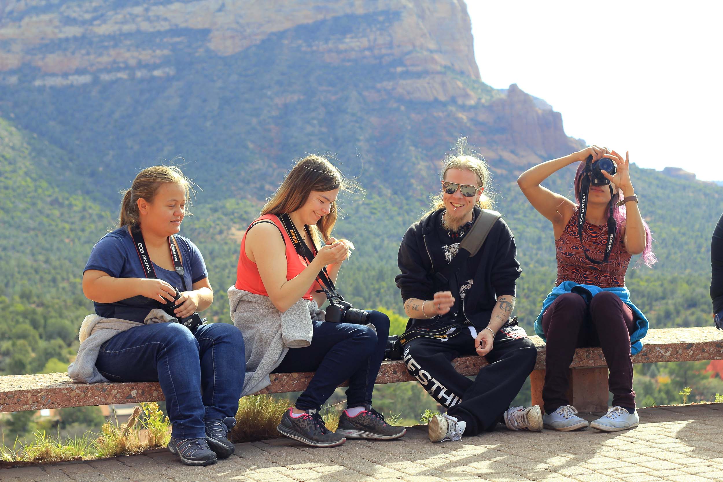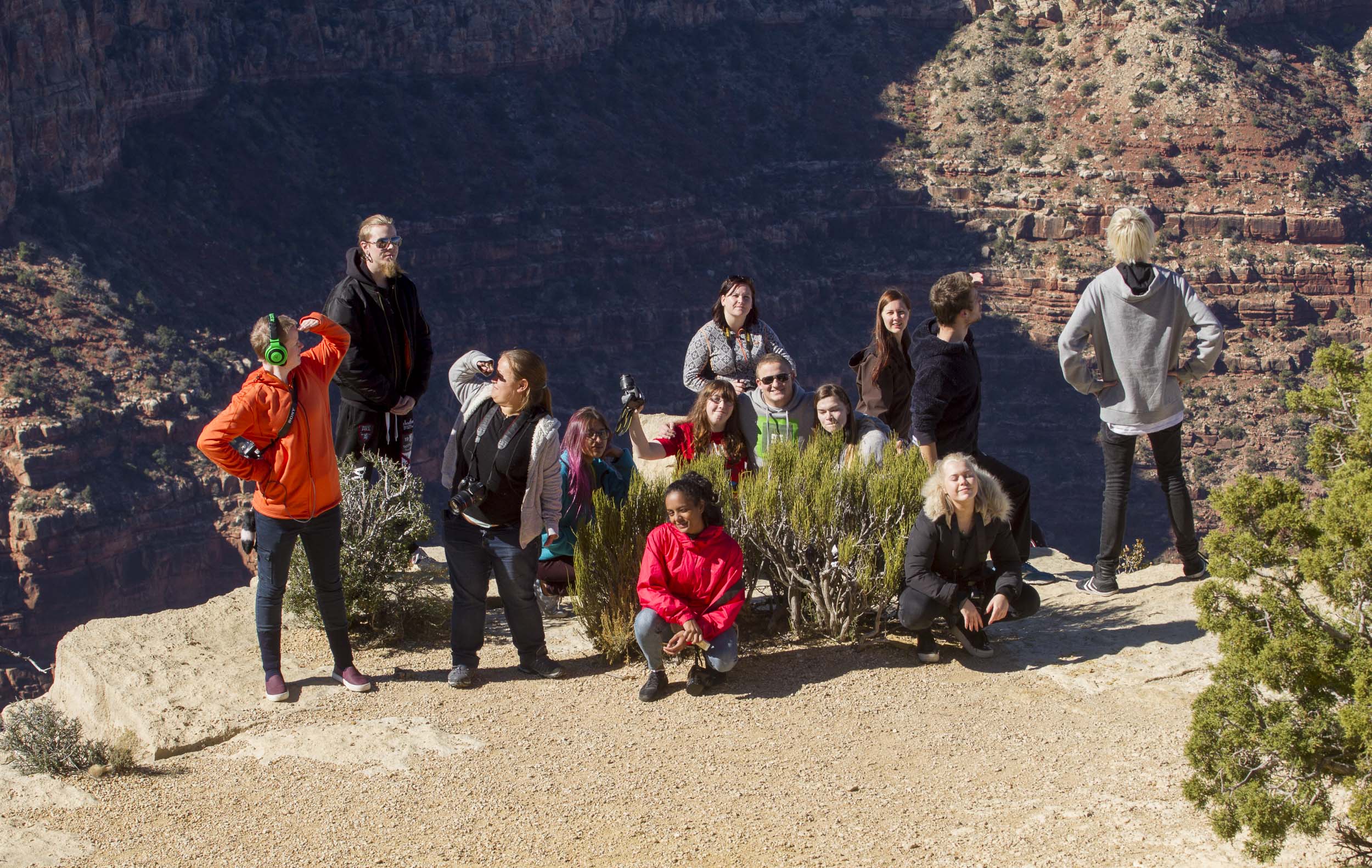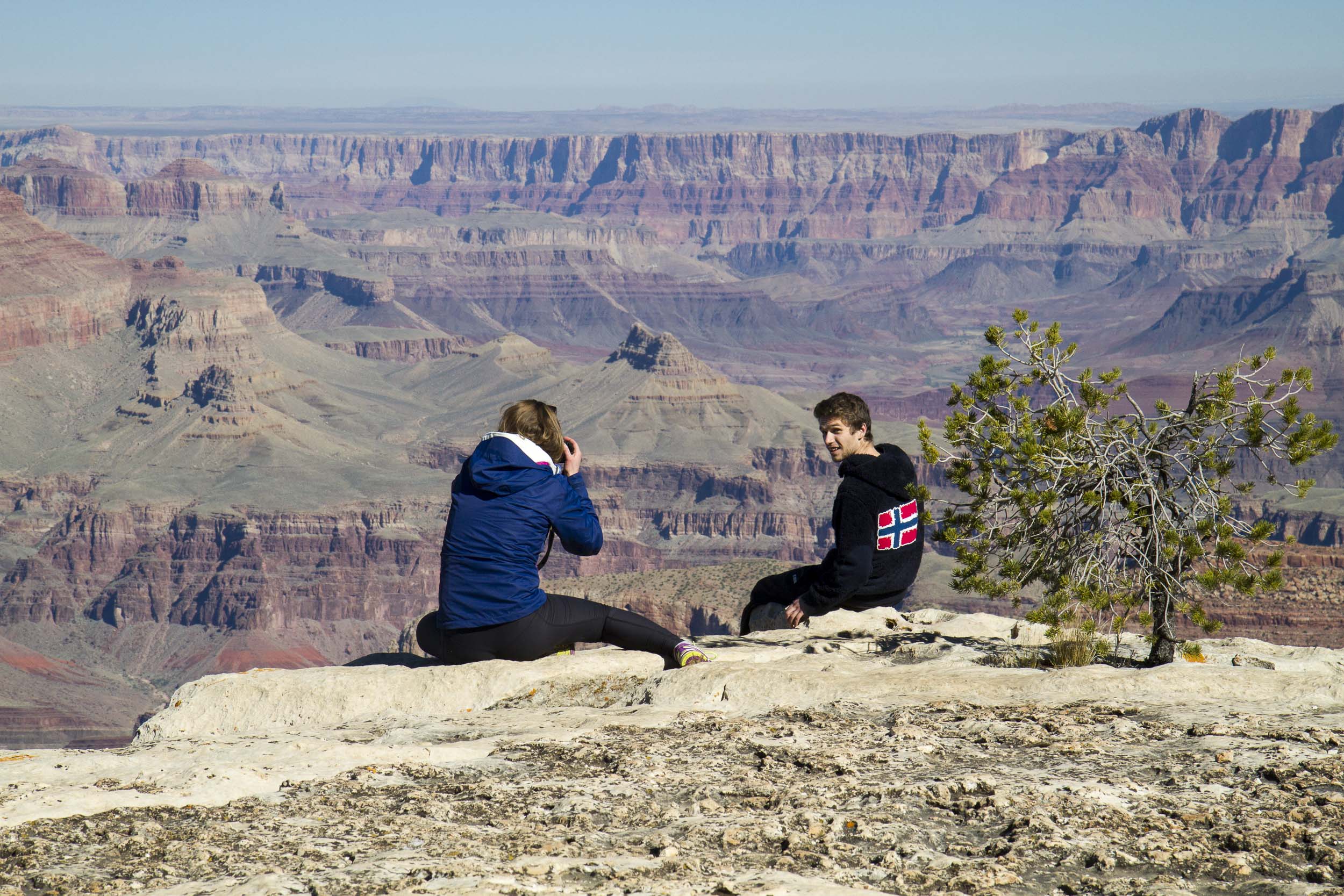 “Alt er stort i Amerika” - Thea. Det tror jeg vi alle er enig i, alt fra maten, shoppingsentre, bilene, veiene, fjellene, trærne, ALT! Ikke minst Grand Canyon, det er så stort at man ikke forstår det selv når man ser det med egne øyne (eller gjennom kameralinsen). Mari mente det var en super klasse å henge på kanten av Grand Canyon med. Bokstavelig talt, helt på kanten.