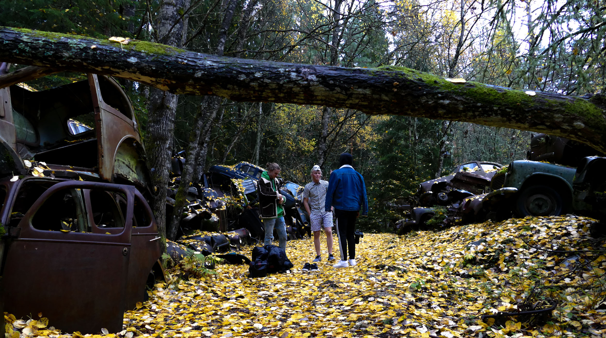 Dypt inne i de svenske skoger hadde vi hørt at det finnes en bilkirkegård. Vi heiv oss i minibussen og kjørte inn i ukjent terreng på en svingete grusvei. Helt til gamle bilvrak plutselig dukket opp i veikanten. Til slutt kom vi til enden på veien og et helt jorde var fullt av gamle bilvrak. Inne i skogen var det enda flere – titalls, ja hundrevis av gamle biler som naturen gradvis er i ferd med å ta over.