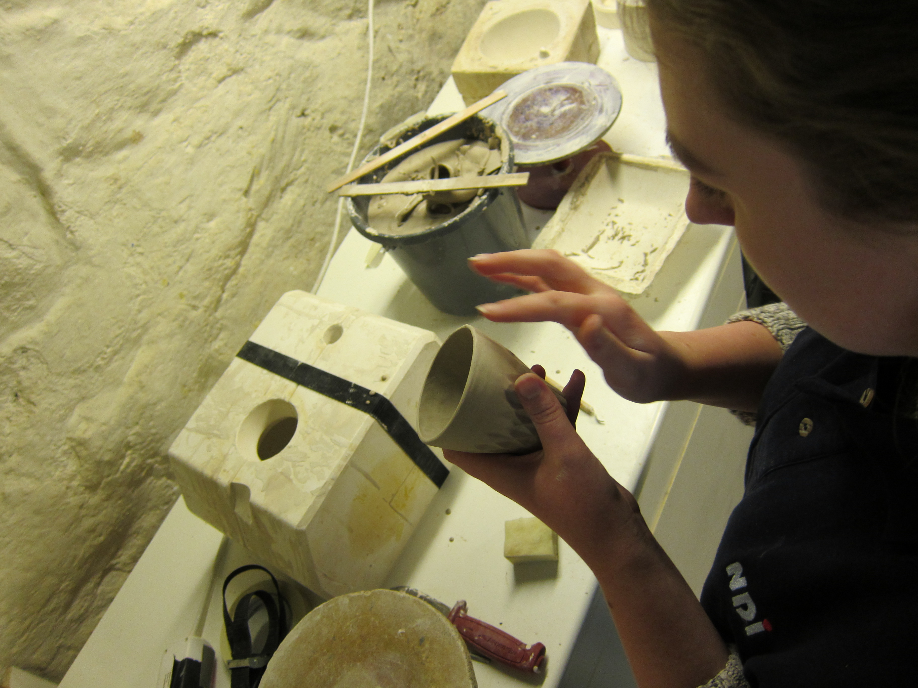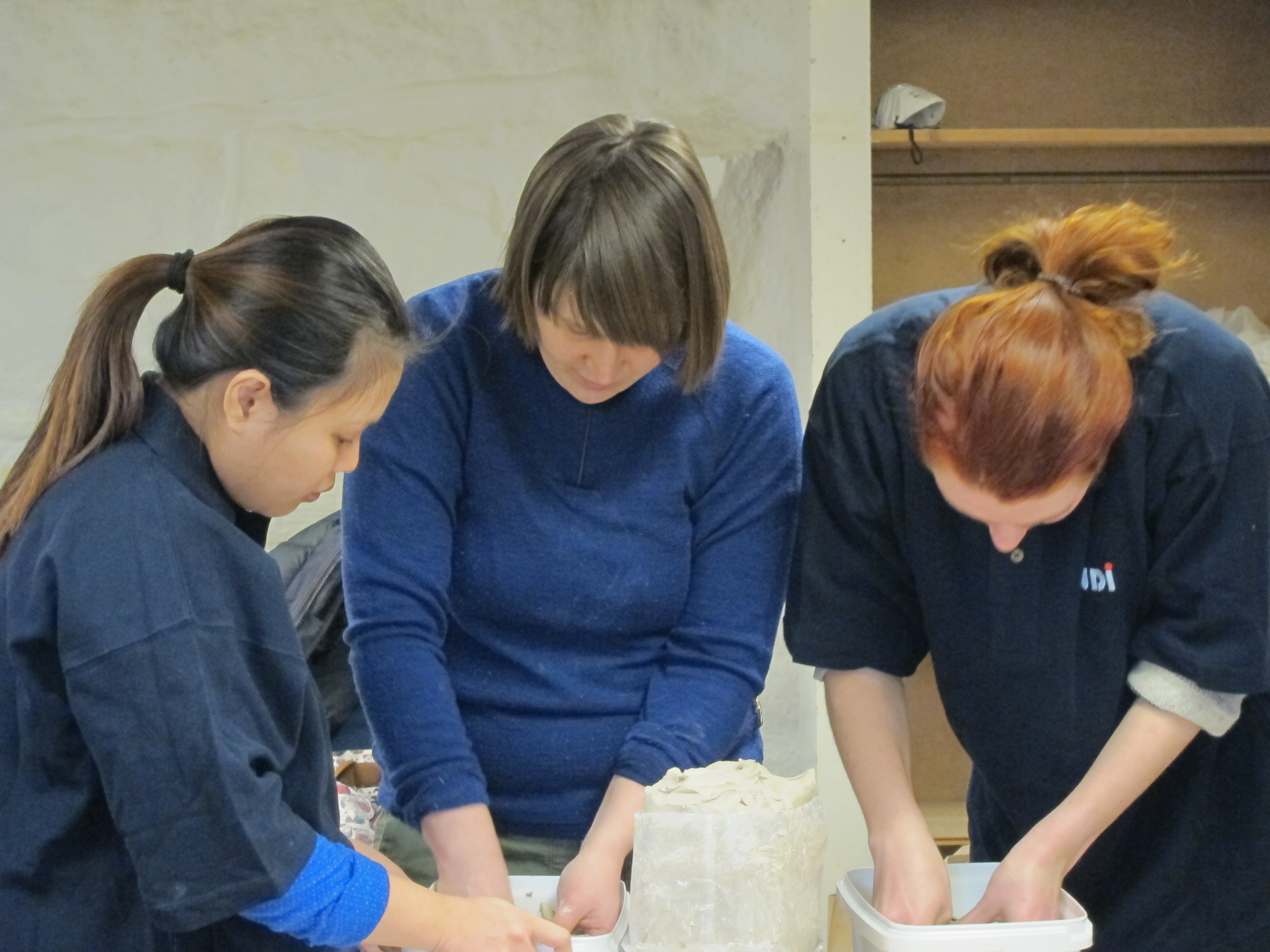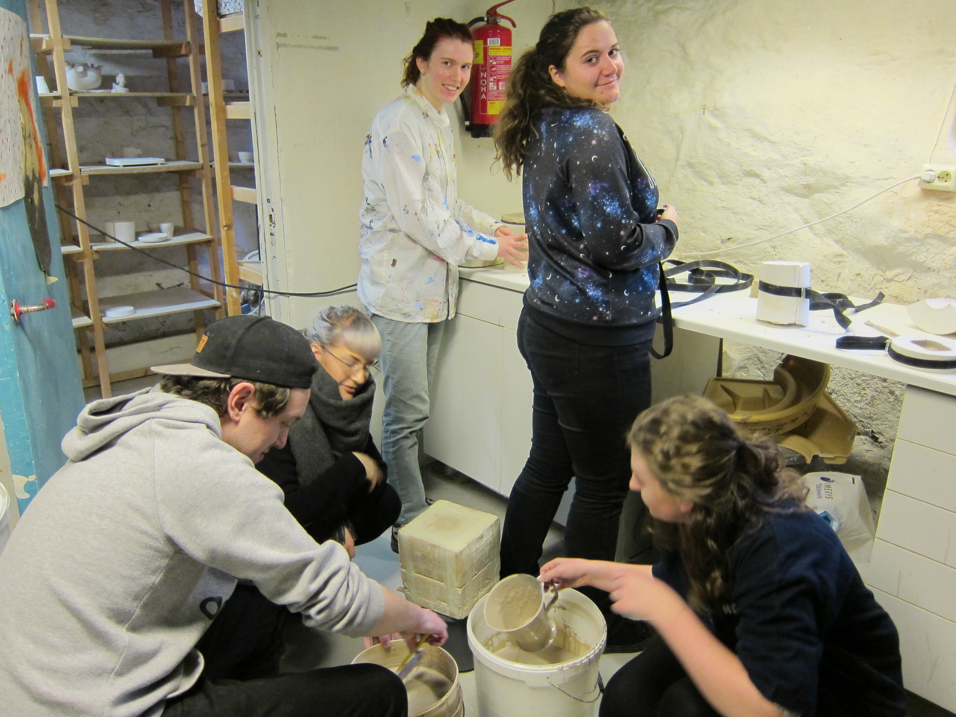 Det har vært en iskald januar i Oslo, men på kunstlinjene har vi varmet oss på varmen fra keramikkovnen. Vi har hatt besøk av kunstner og keramiker Ann Kristin Einarsen, som har lært oss hvordan vi kan lage egne gipsformer og støpe i porselen. I disse digitale tider er det utrolig hvor deilig det føles å kunne lage noe med hendene! I valget mellom noe konseptuelt og noe man virkelig kunne bruke, valgte 90% av elevene å lage kopper, boller, flasker og tekanner. Kanskje sier det noe om at vi alle lengter etter større kontakt med der tingene kommer fra, ja, til og med å lage dem selv når vi kan.