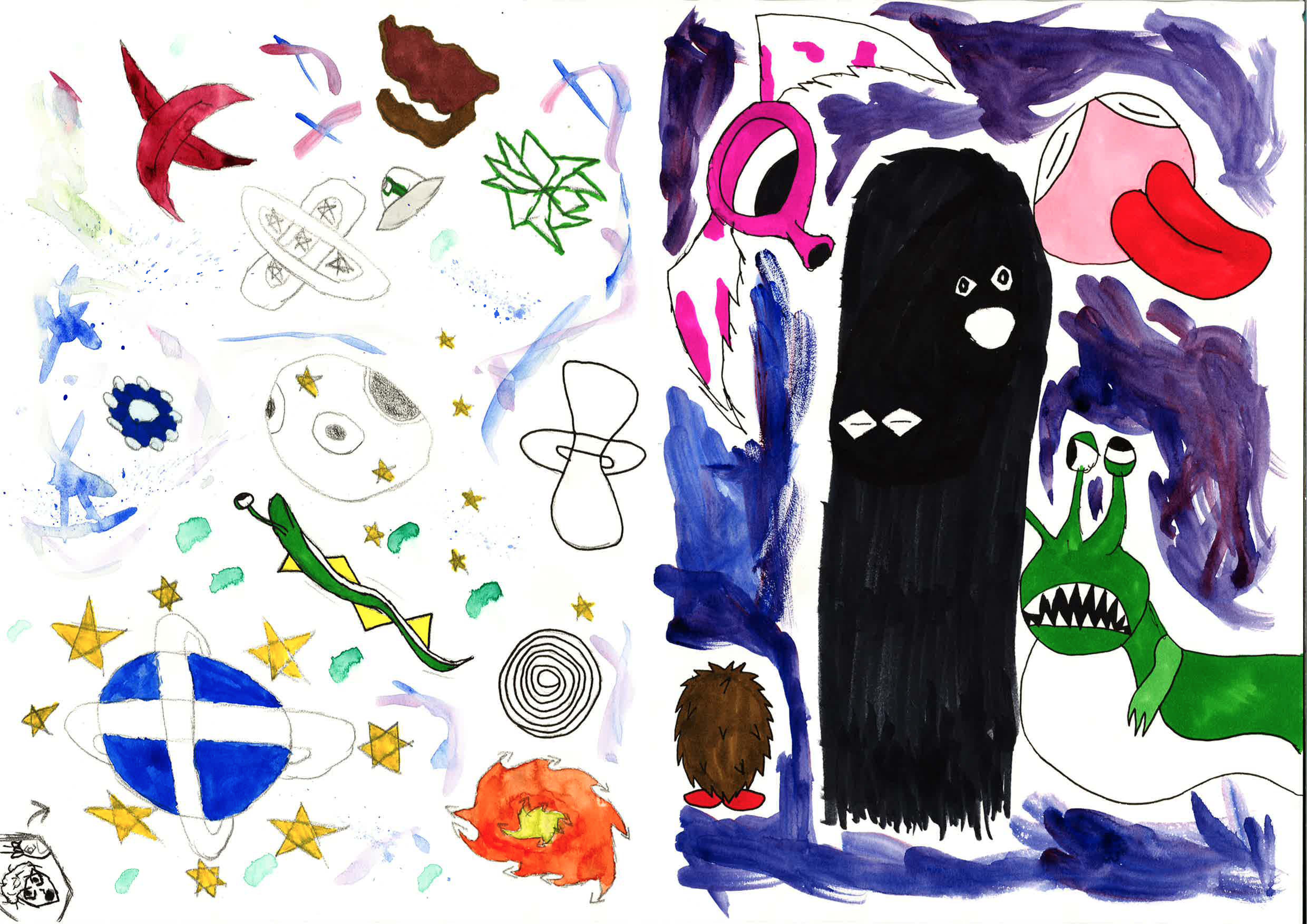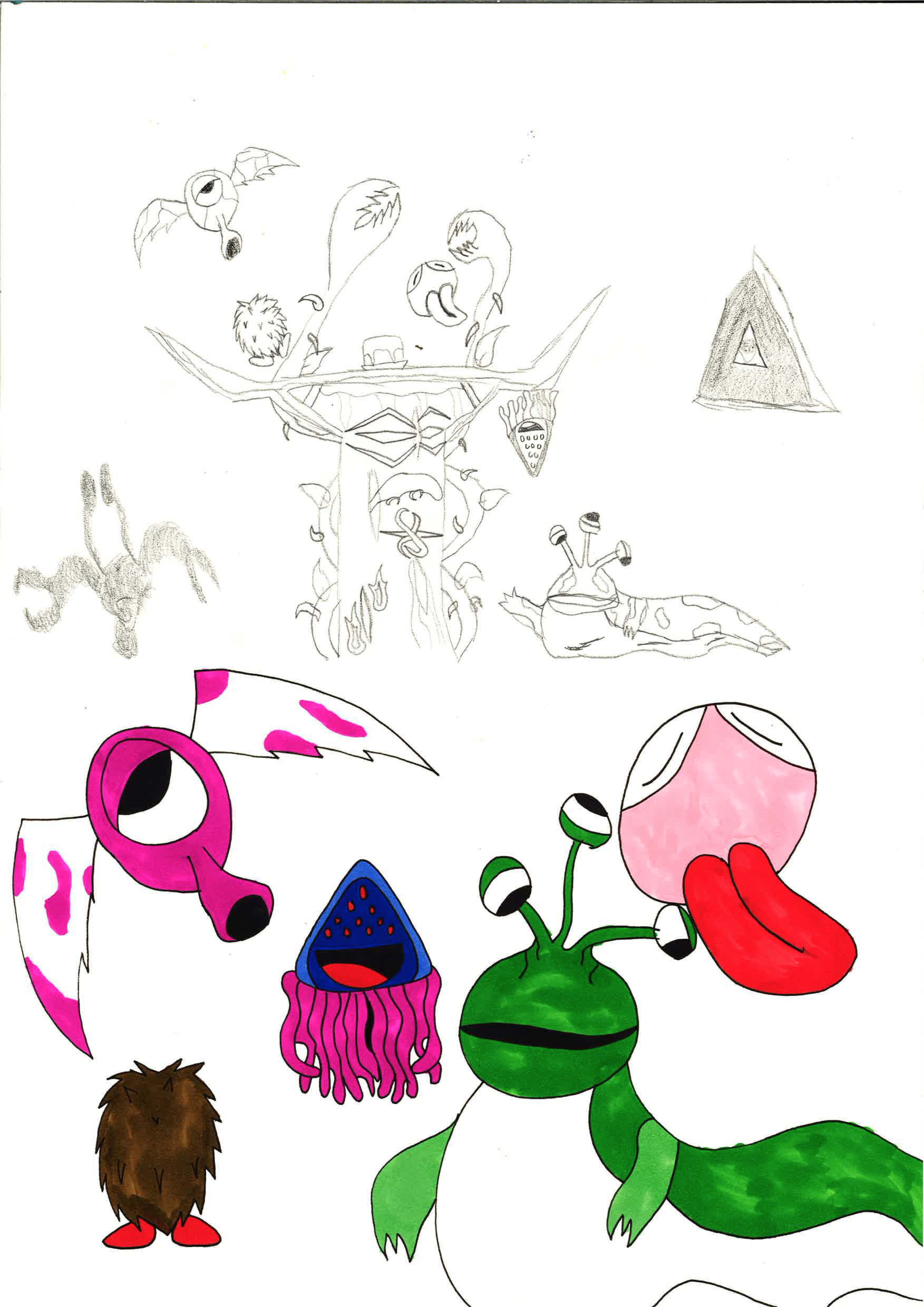 Elever fra forfatterlinja på Danvik har skrevet spennende tekster om blant annet en trollmann, en heks, romvesener og romskip, et magisk hus og verdener, en sirkusdirektør fra et sirkus, en by av tall, barn på eventyr og mye mer. Elevene på Rønningen har fått en tekst hver, og valgte selv utdrag fra teksten som de ønsket å illustrere. De har først fokusert på karakterutvikling av hovedperson. Se resultatene her: