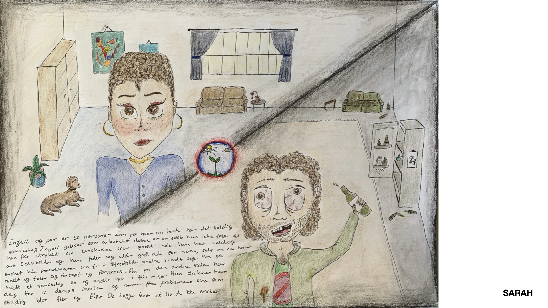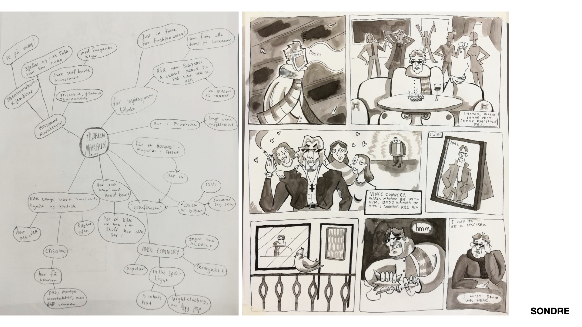 Oppgaven startet med karakterutvikling, hvor karakterens liv utarbeides og tegnes, enten i illustrasjoner med småtegninger /vignetter eller i en tegneserie. Begge deler kan fort utvikle seg videre i senere prosjekter!