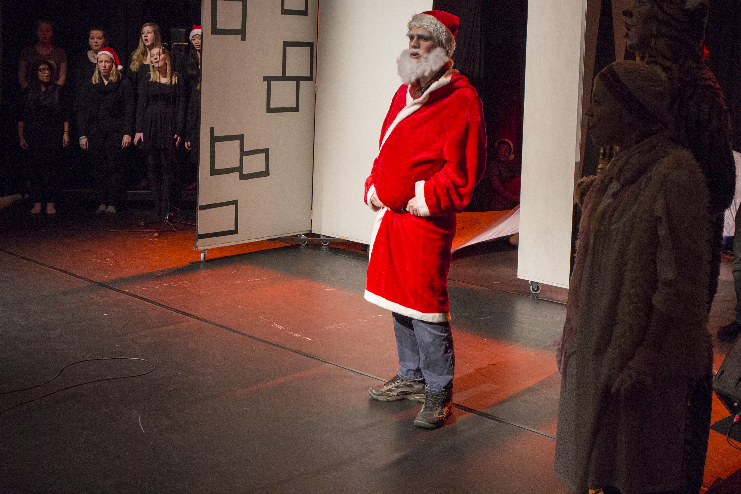 – Jakten på julestemningen, sier julenissen fra Nordpolen når han blir spurt hva stykket handlet om! Julenissen spilles av Asgeir Aanonsen.
