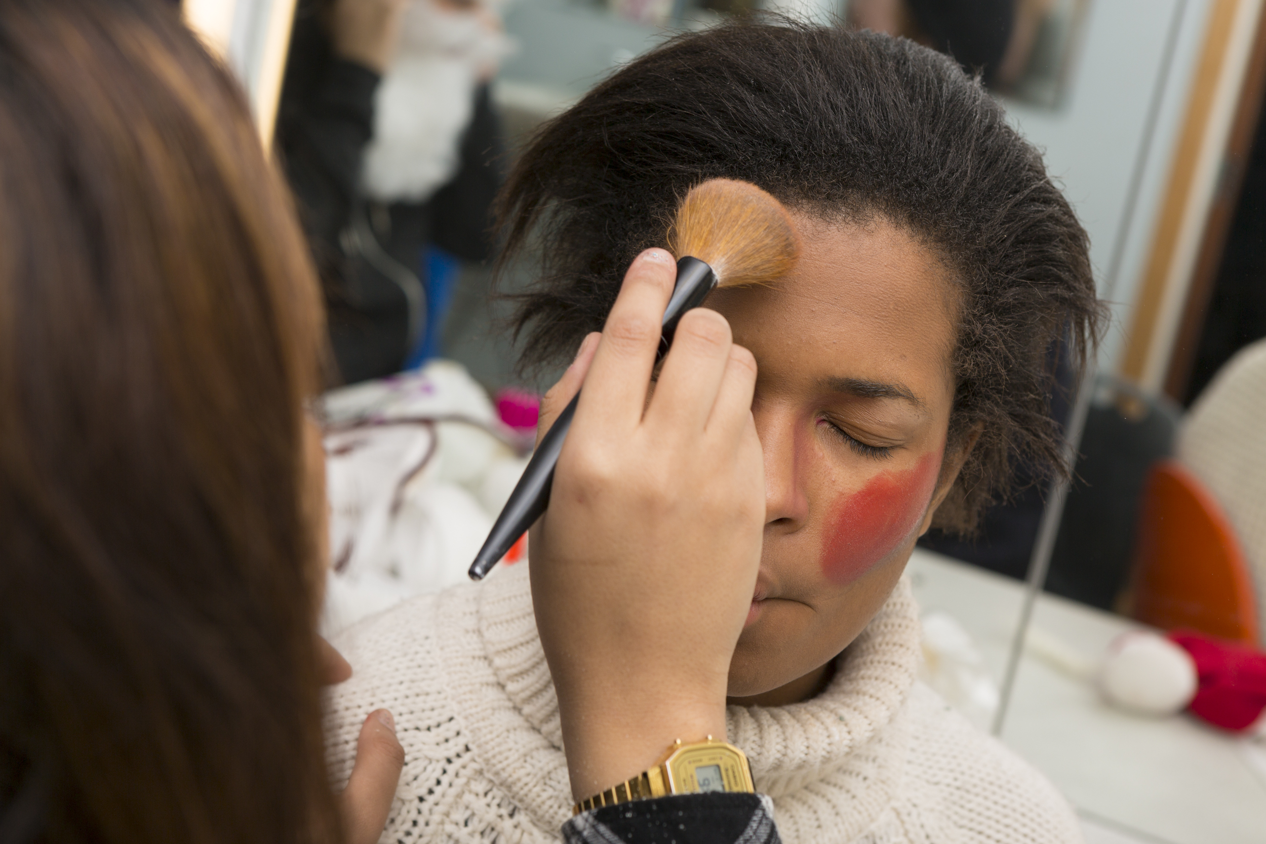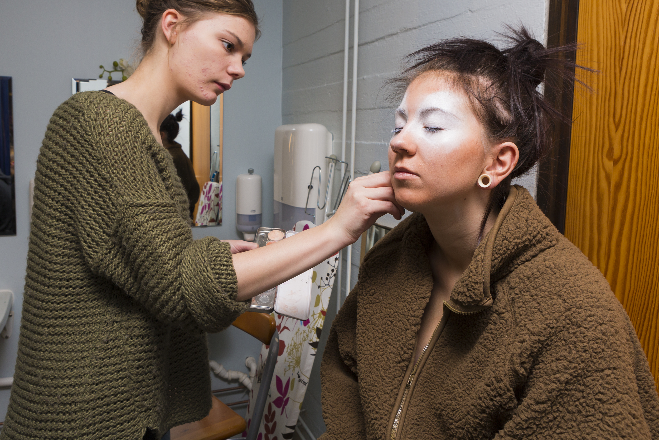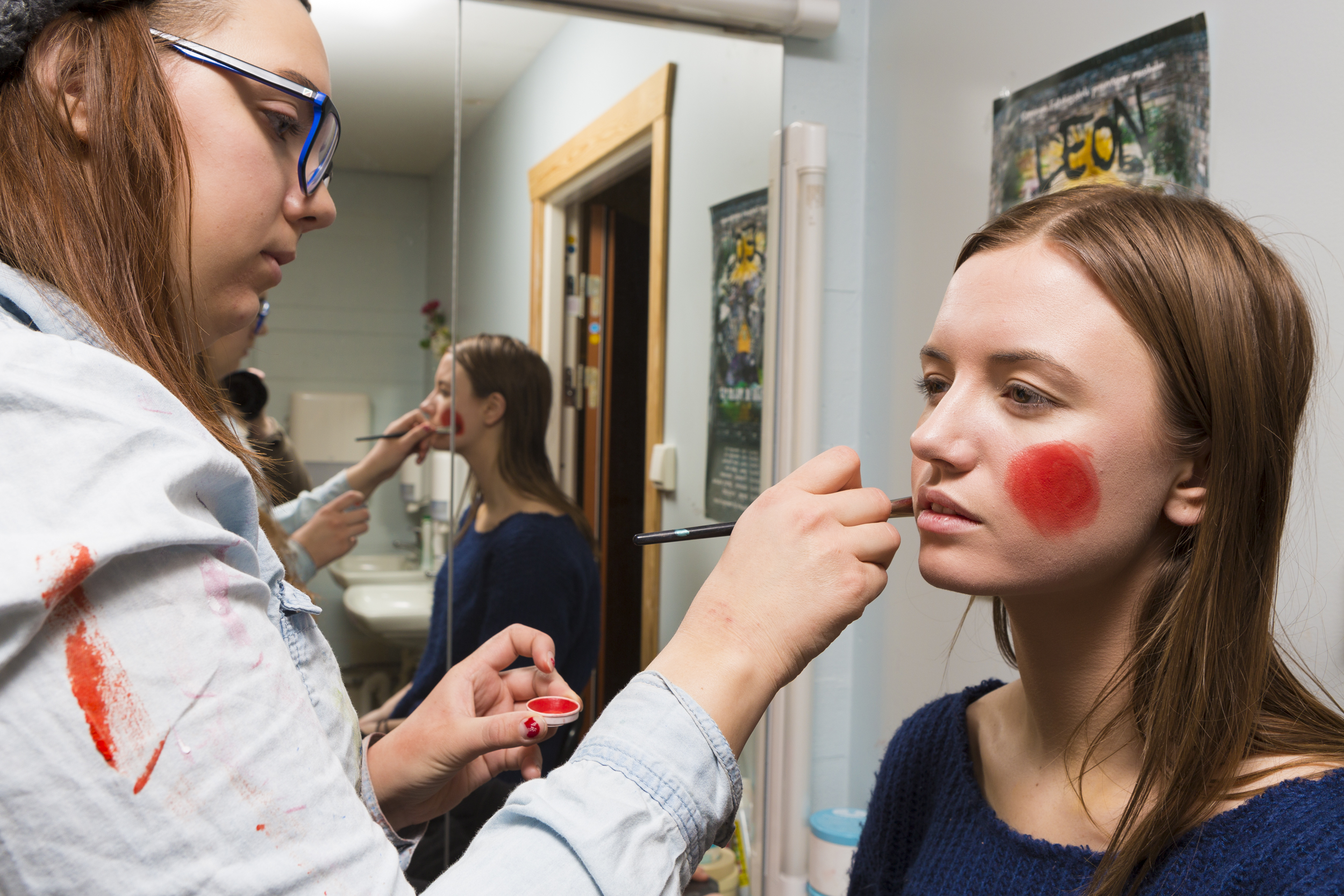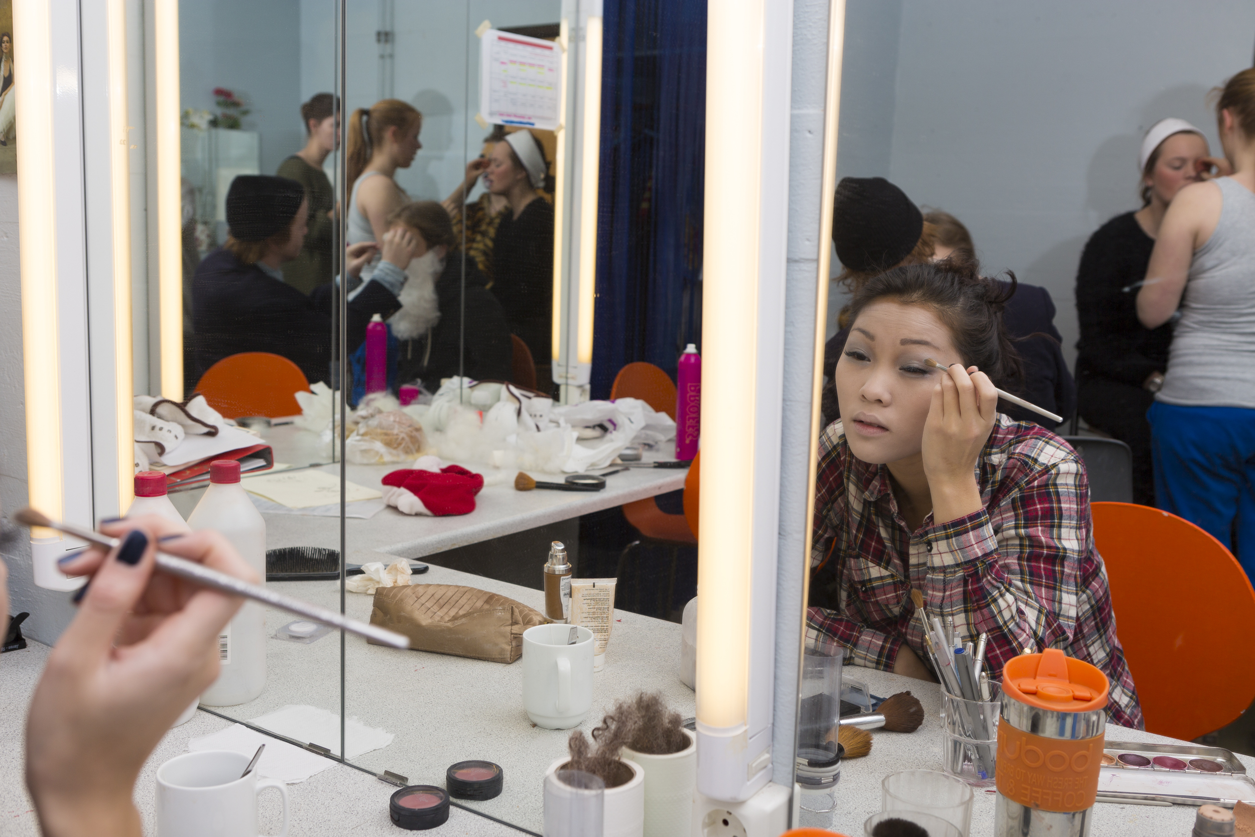 I dag har vi kikket litt på hvordan skuespillerne EGENTLIG ser ut. Så har vi snakket med sminkegruppa og de som filmer alt som skjer under forestillingen. Fra sminkegruppa tok vi med oss en viktig læreregel; alt tar tid.