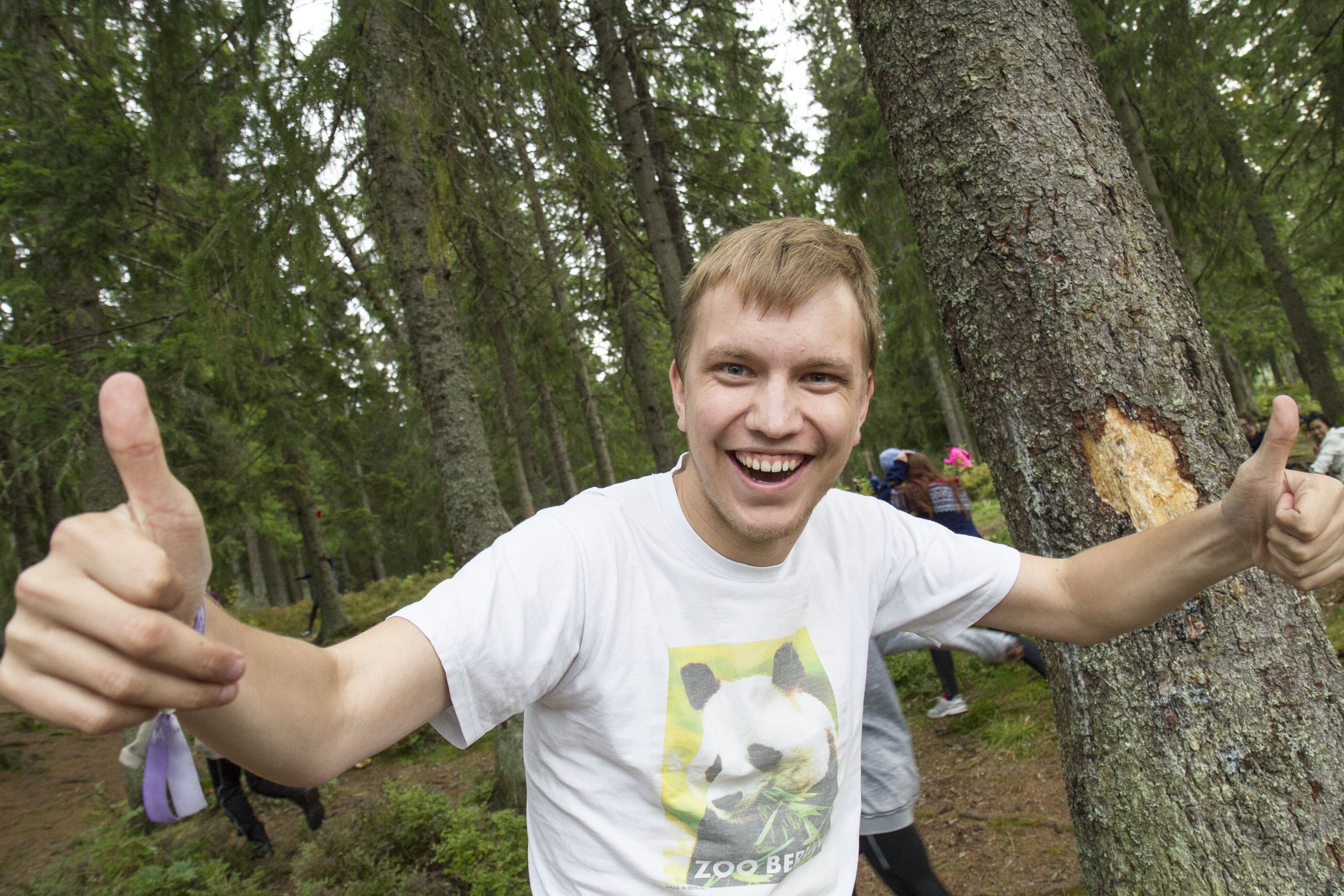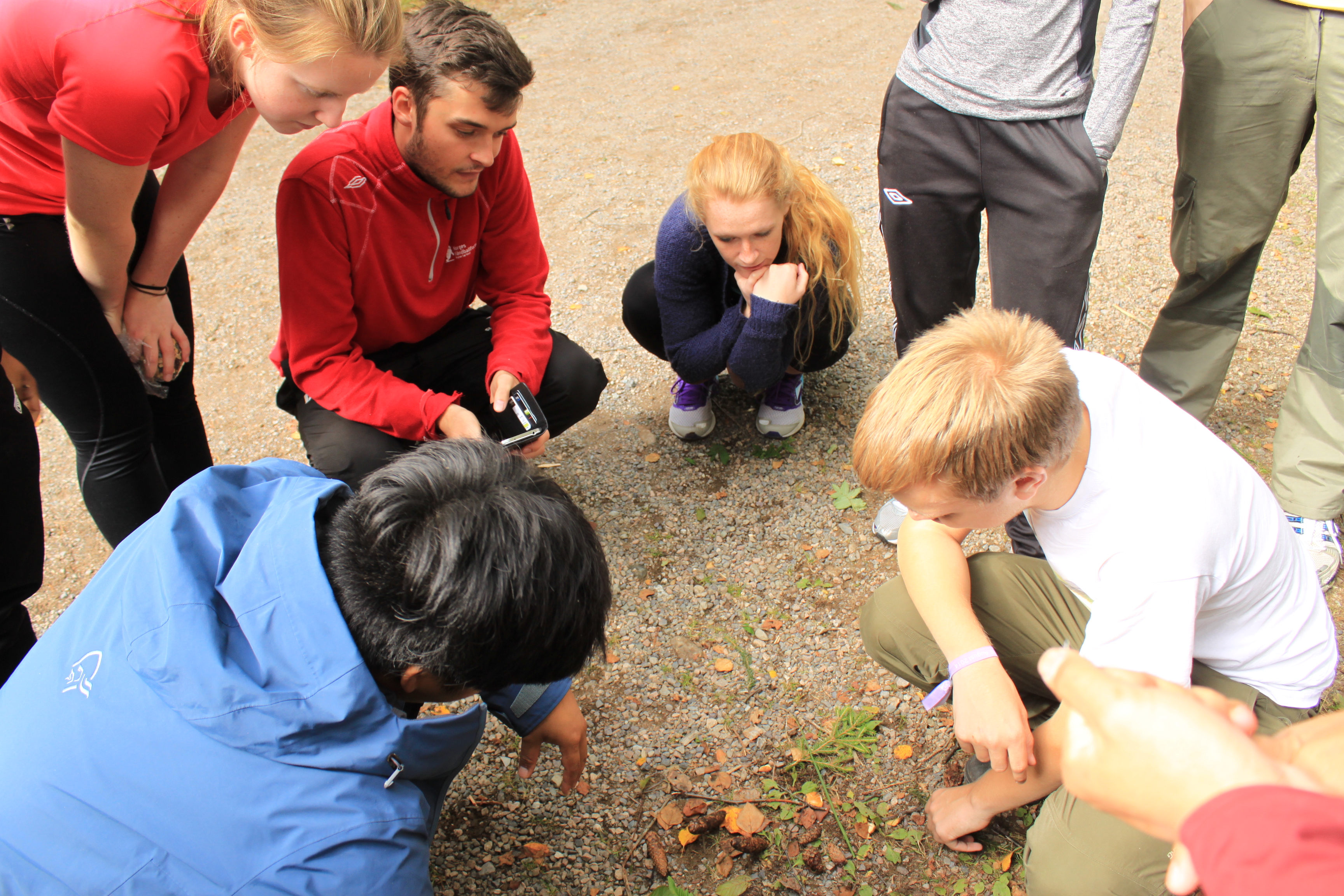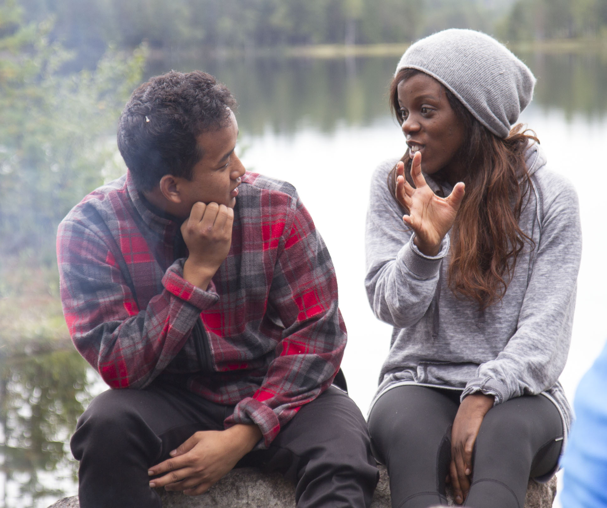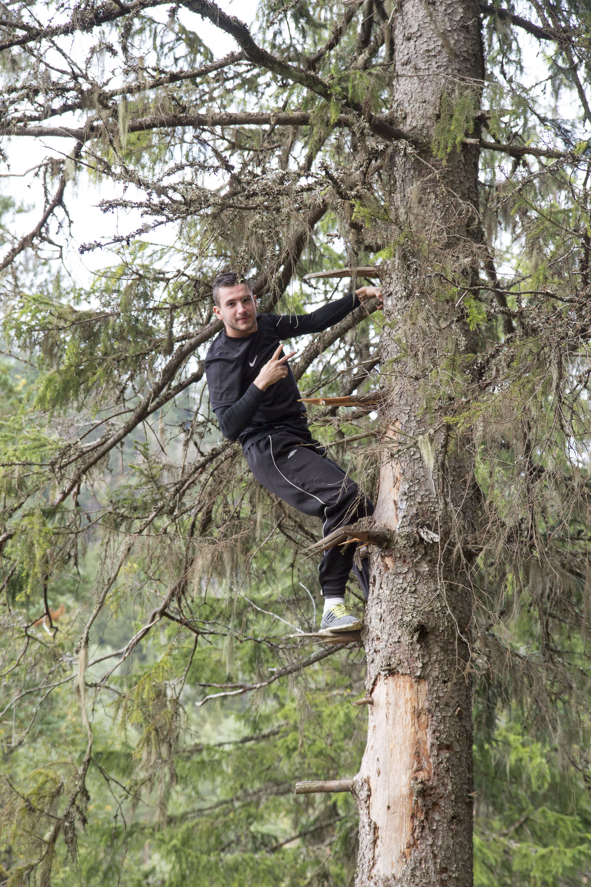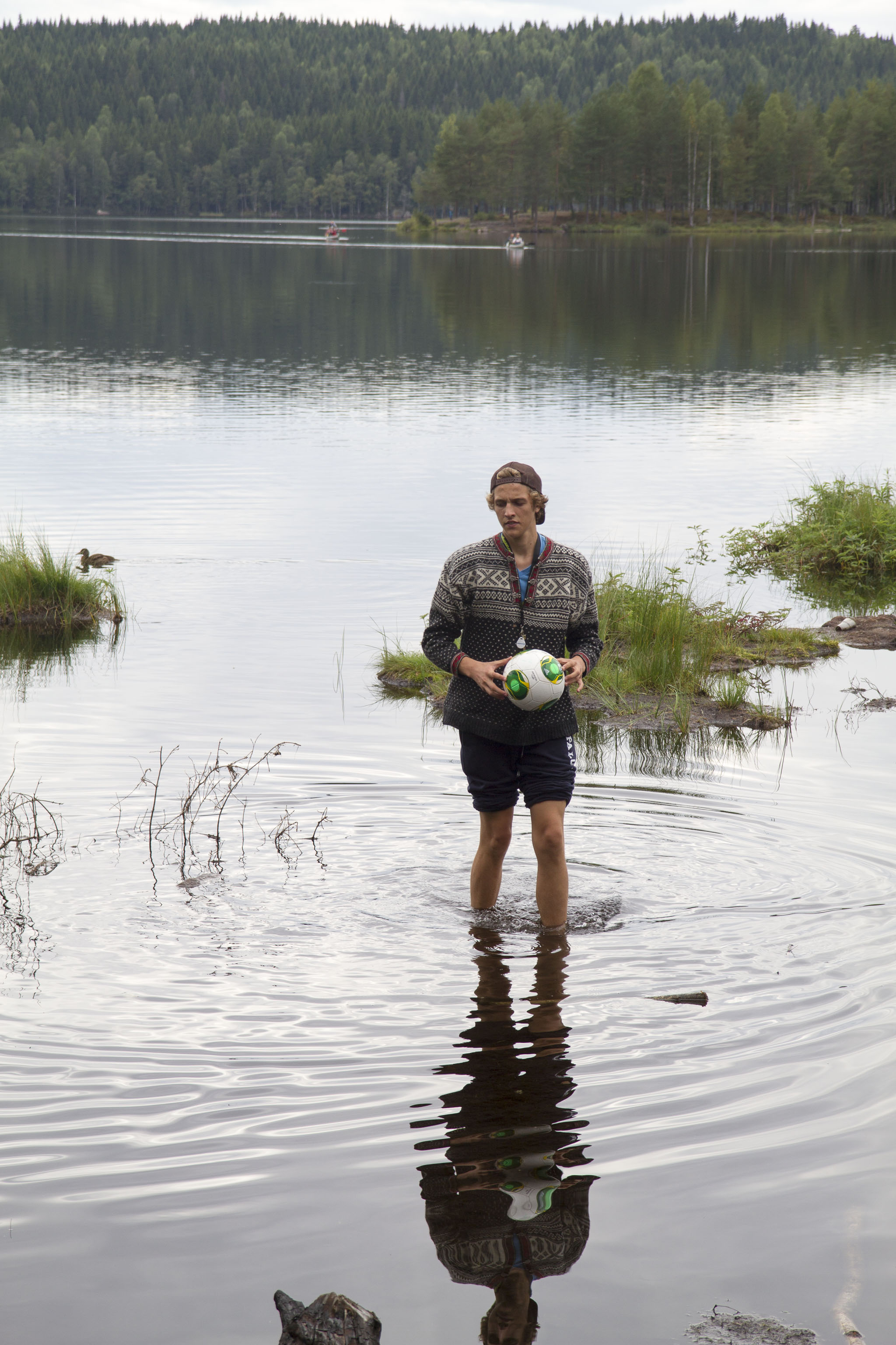 Vi slår leir mitt i skogen blandt maur og mygg. Ved må vi hogge selv, og kaffe koker vi på bålet. Fisken må også fiskes.