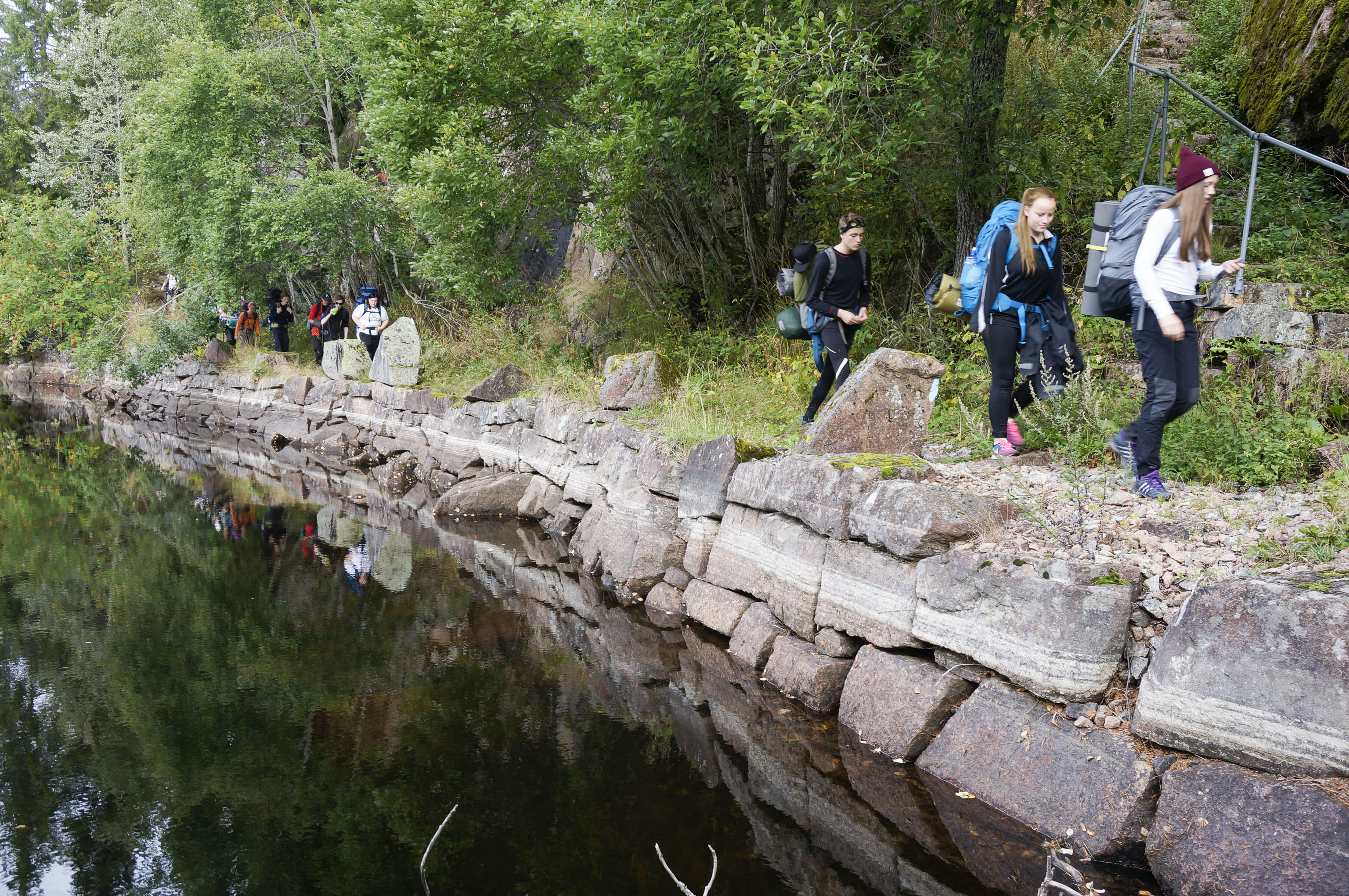 Hele skolen er på langtur i Nordmarka. For en sprek gjeng. Det er langt å gå med tung sekk, men stemningen er på topp og været har holdt seg bra.