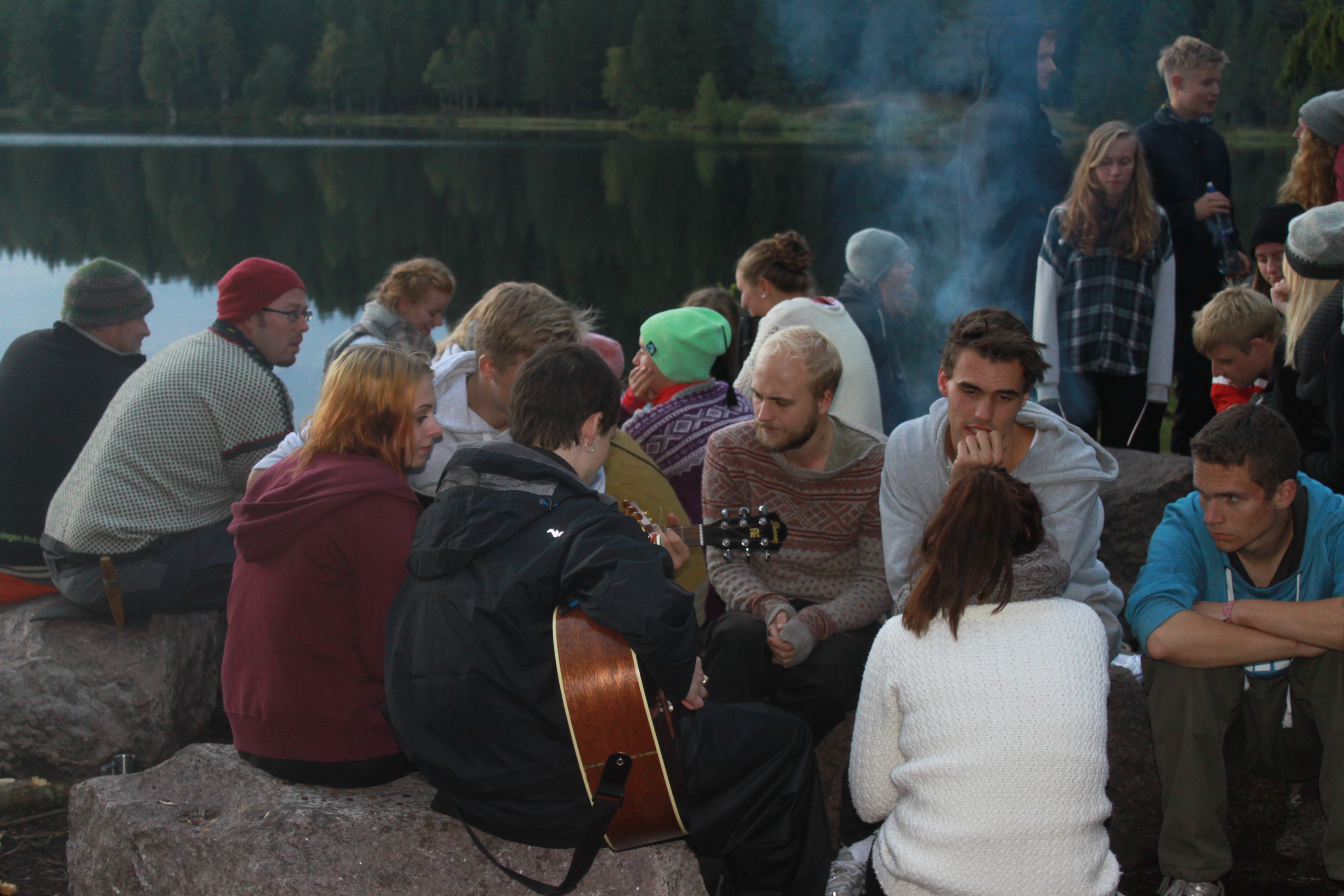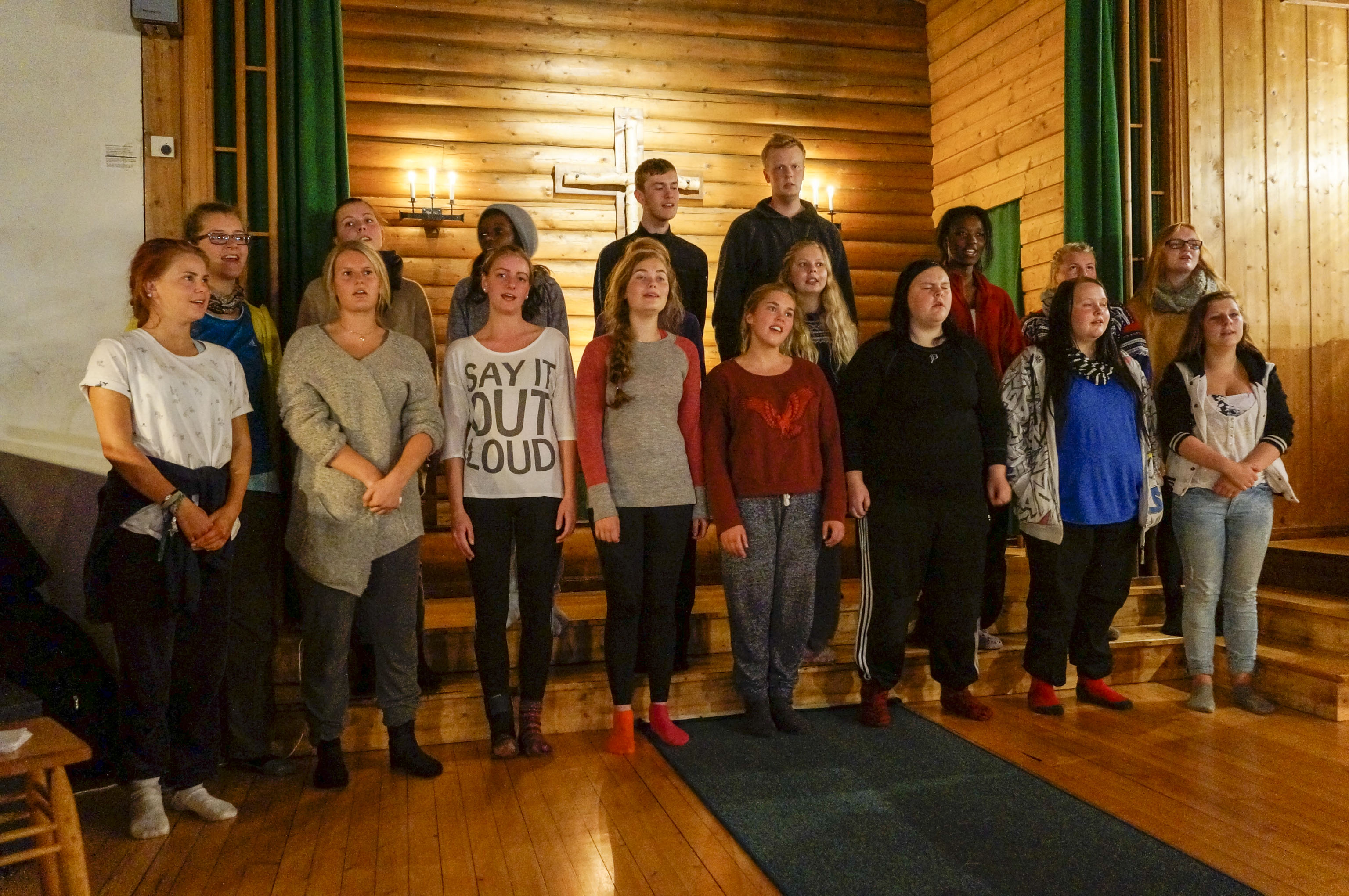 Andre koser seg rundt bålet eller med spill inne på hytta.Vokallinja opptrer med nydelig sang på messe på kvelden, mens alle lærerne er de første som slokner denne kvelden.