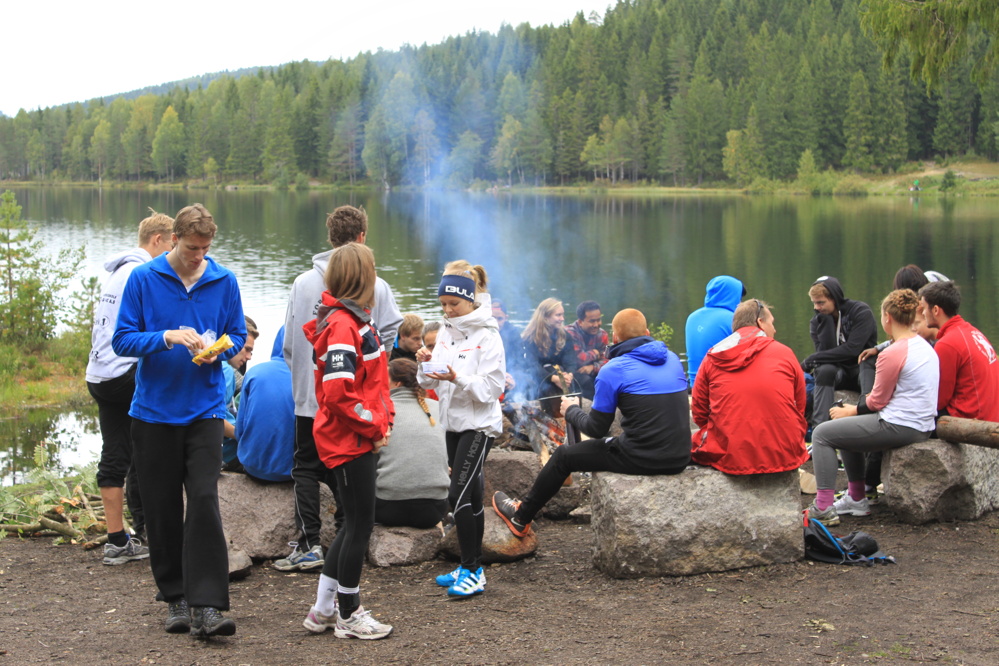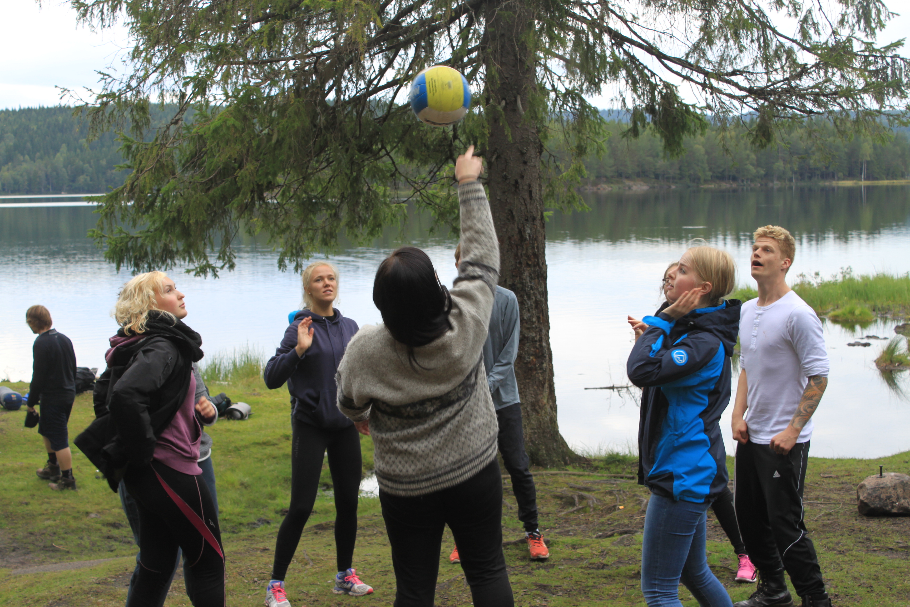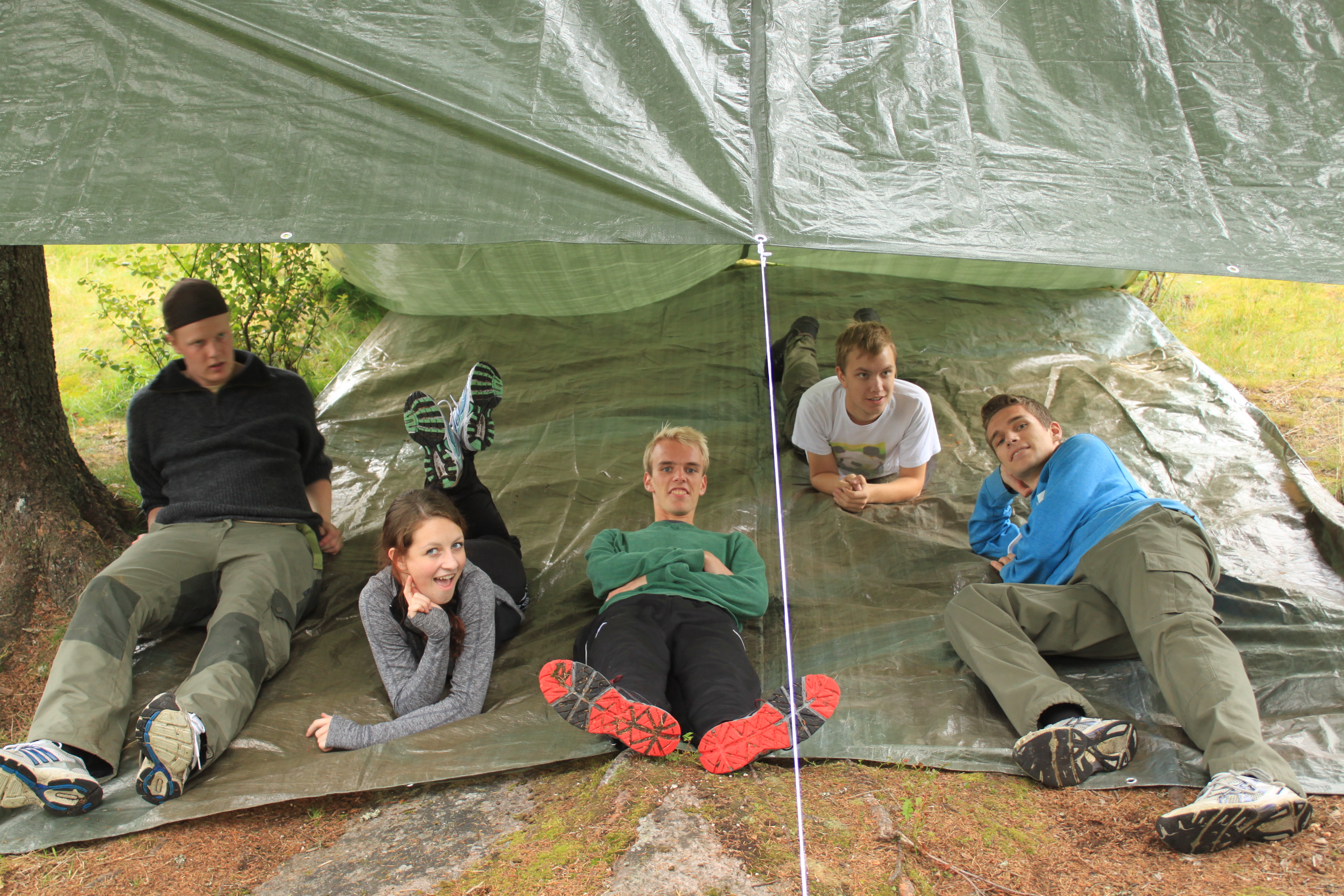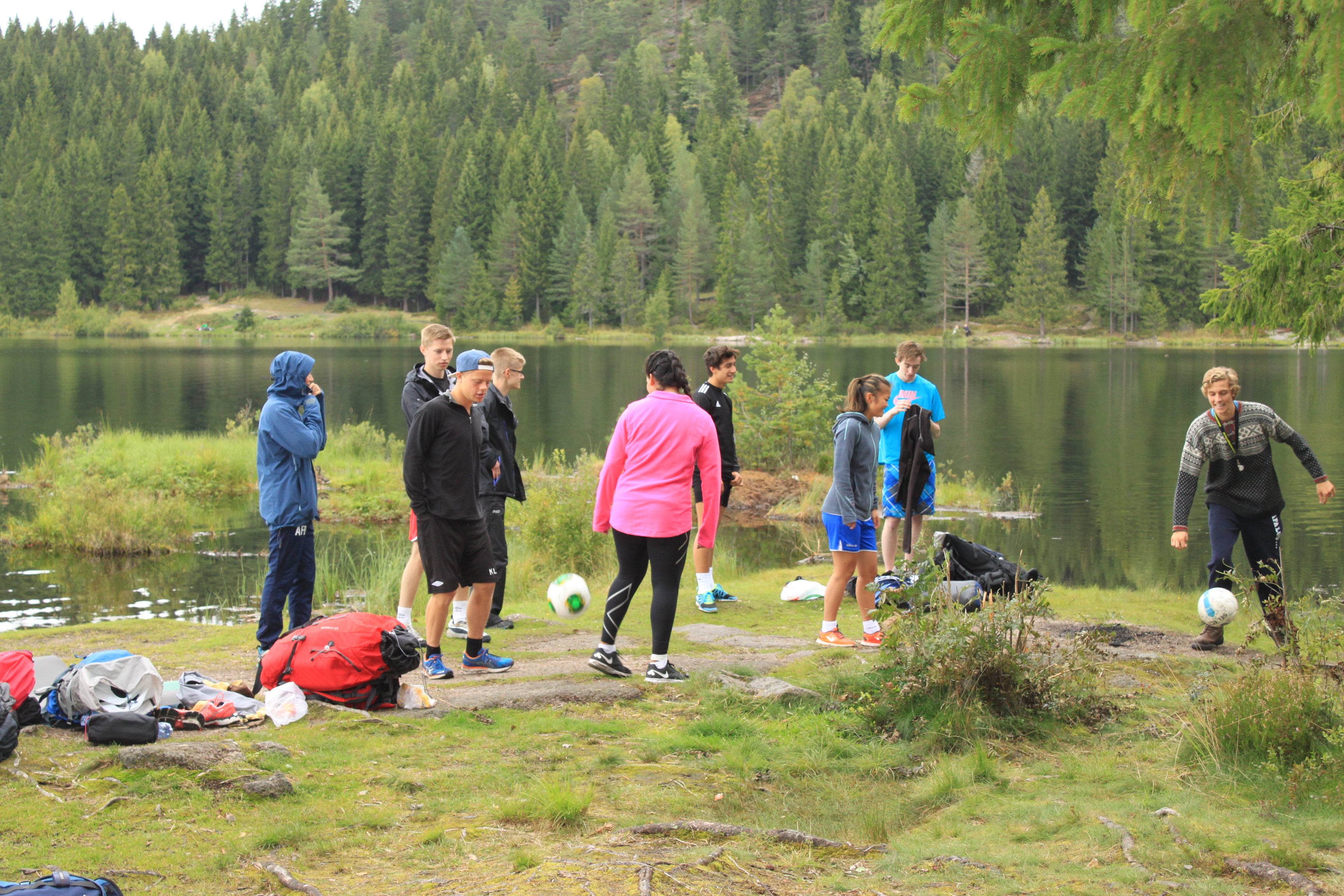 Heldigvis får vi overnatte i køysenger på hytte denne gangen.Enkelte synes fortsatt at det er bedre å sove ute. De slår opp lavo utenfor hytta eller legger seg under åpen himmel. Toppidrettsklassen tar seg en joggetur, mens noen får tid til fotball og volleyball.