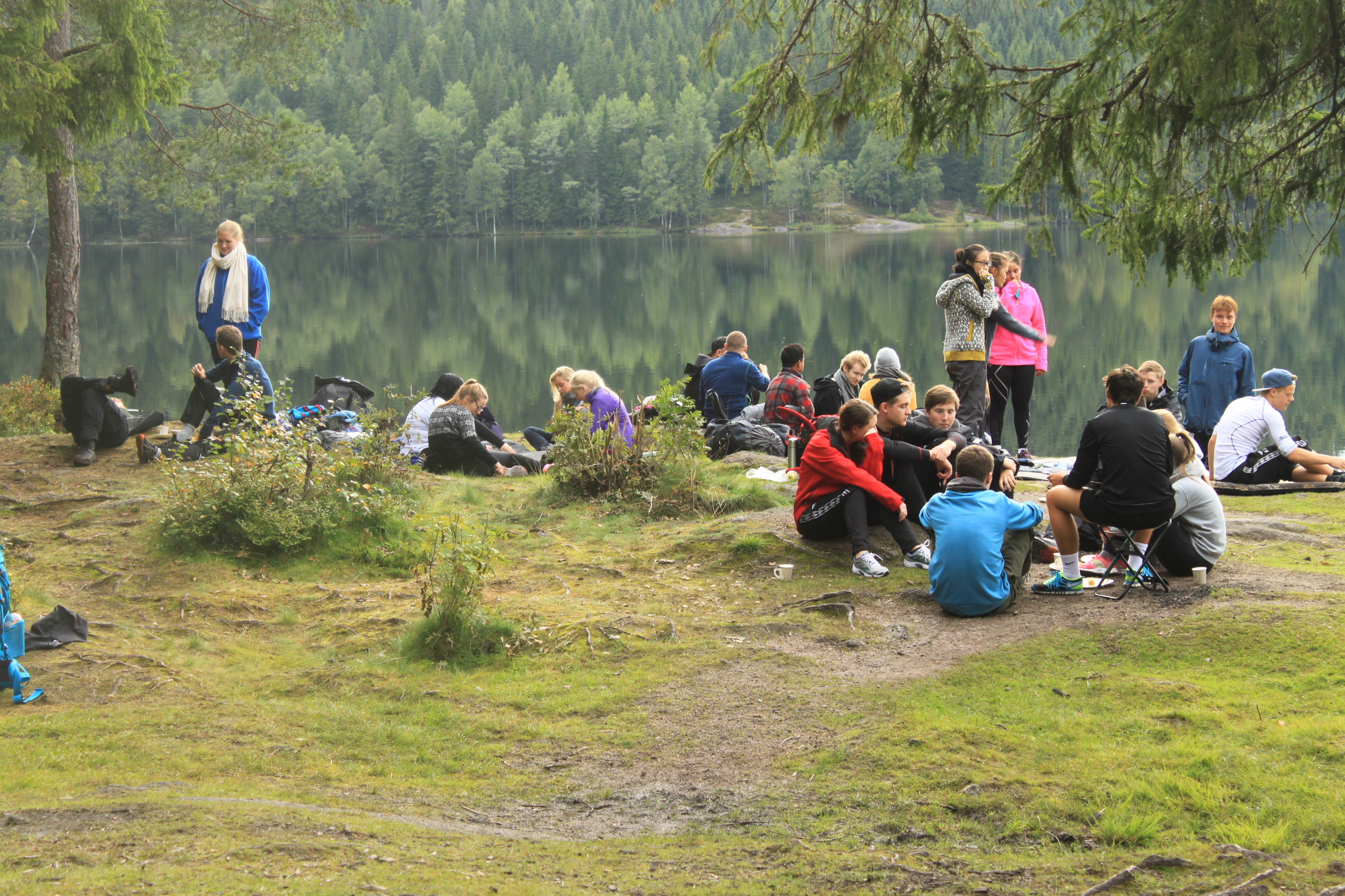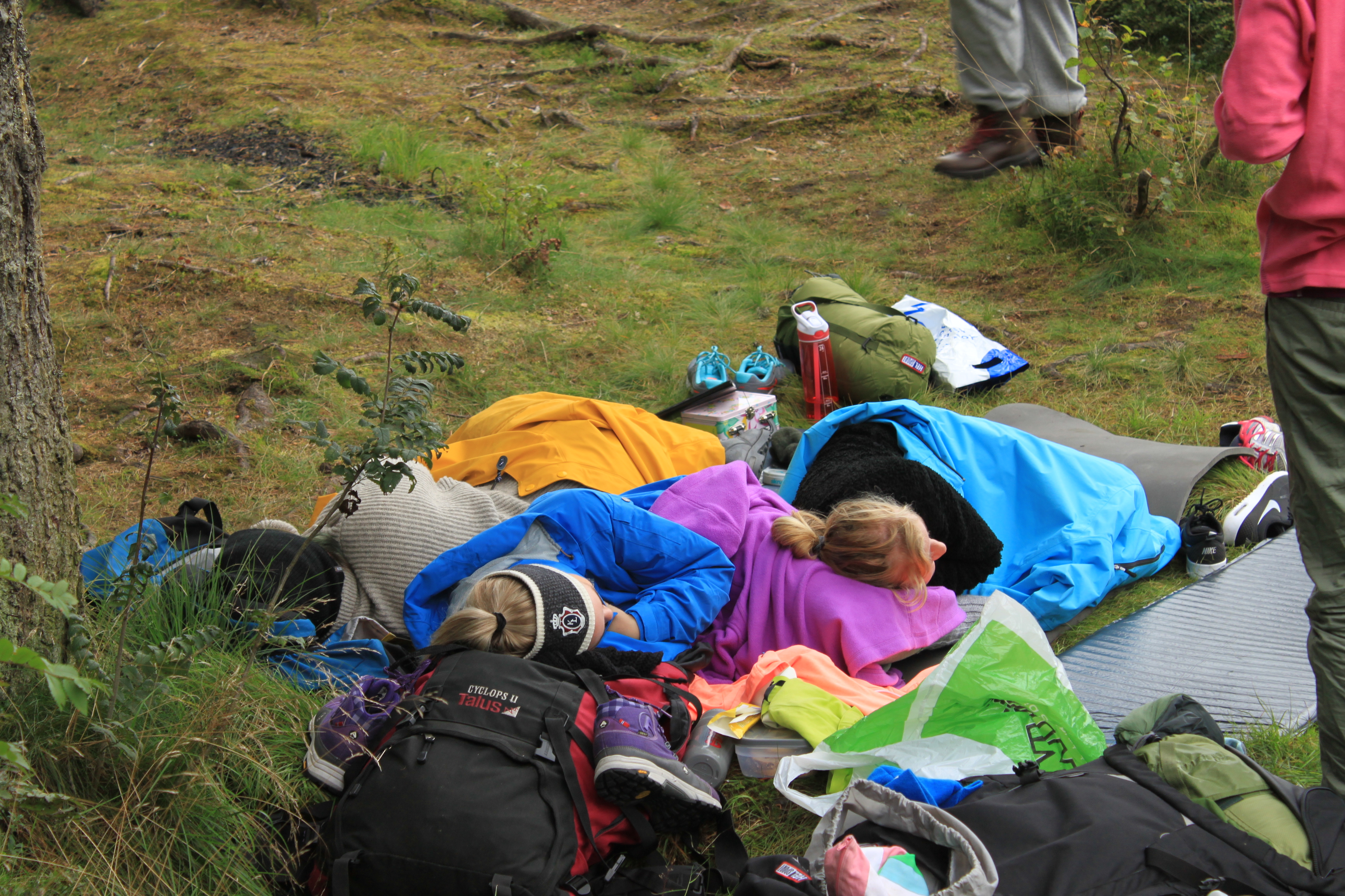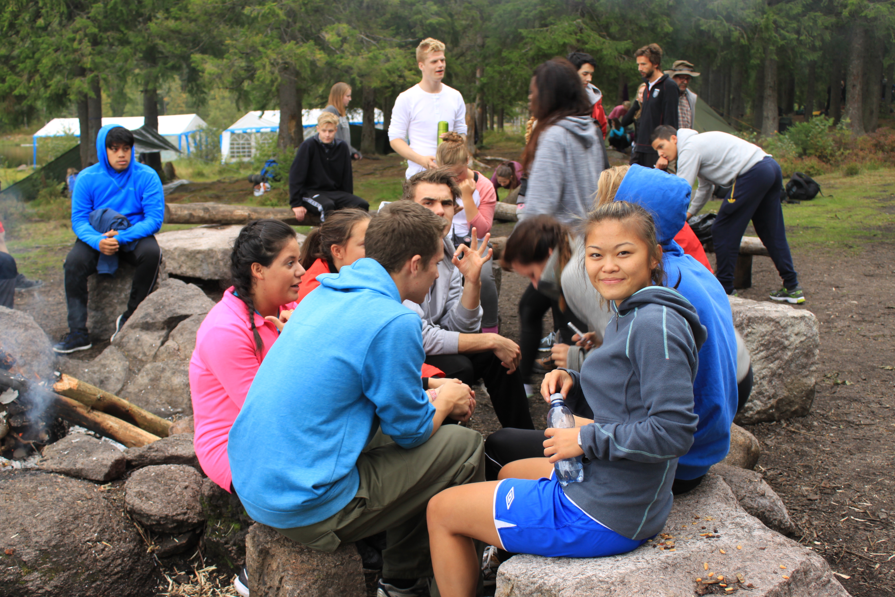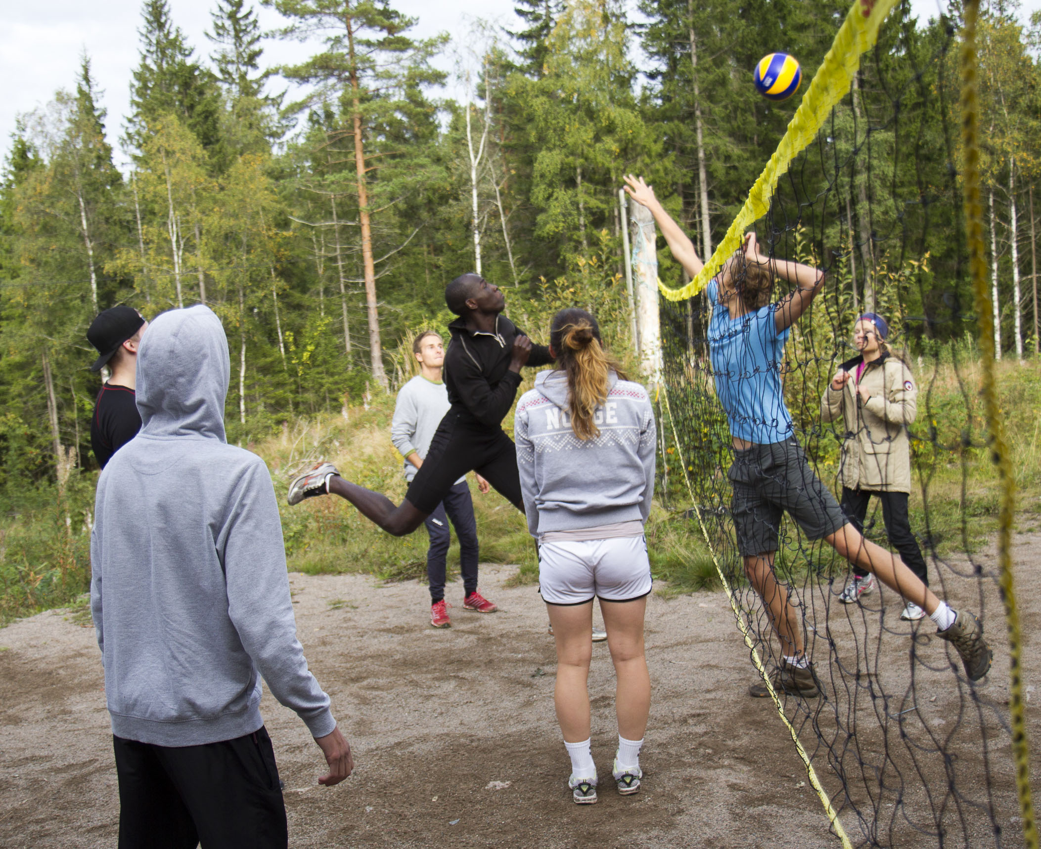 Heldigvis får vi overnatte i køysenger på hytte denne gangen.Enkelte synes fortsatt at det er bedre å sove ute. De slår opp lavo utenfor hytta eller legger seg under åpen himmel. Toppidrettsklassen tar seg en joggetur, mens noen får tid til fotball og volleyball.