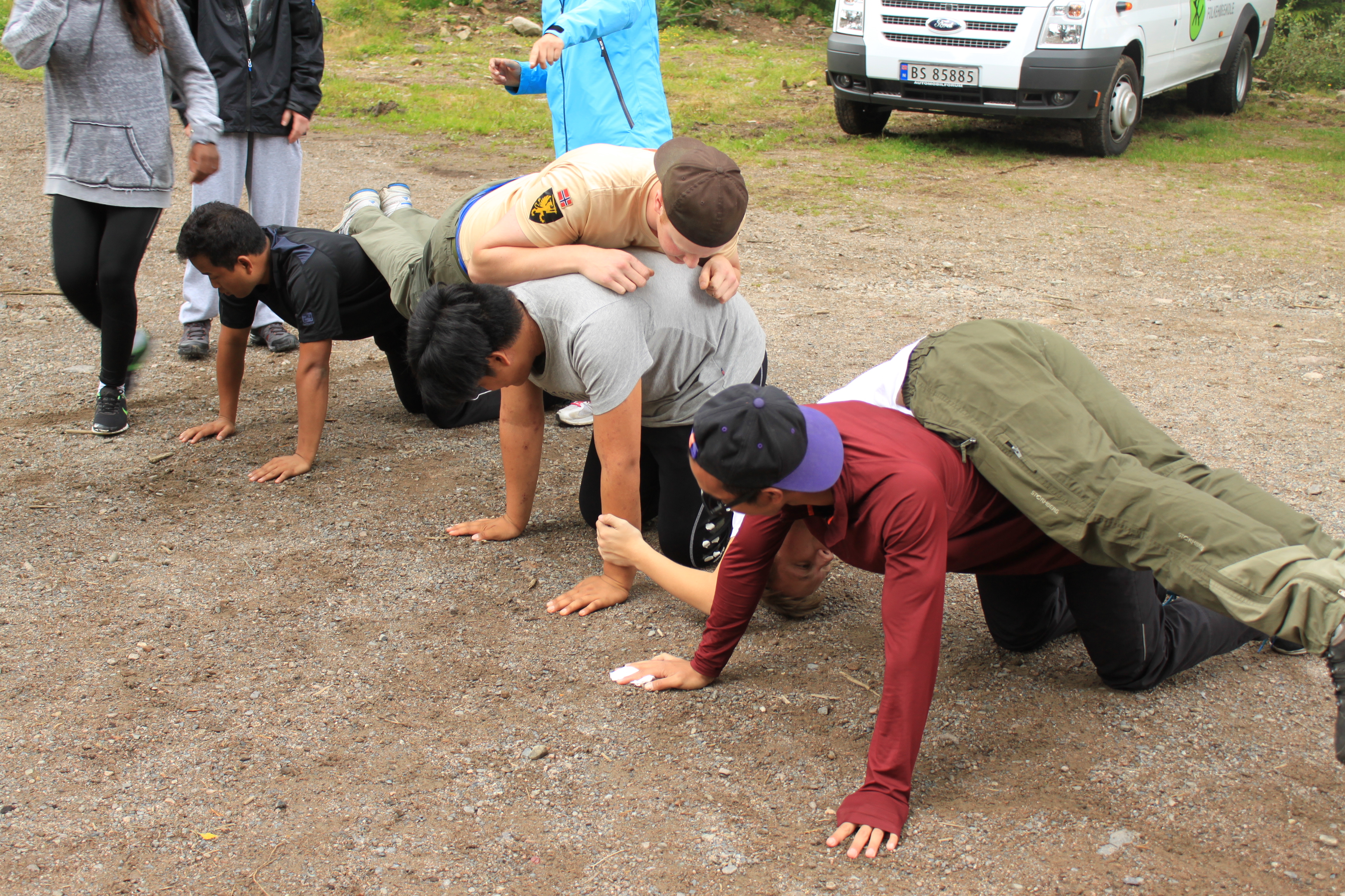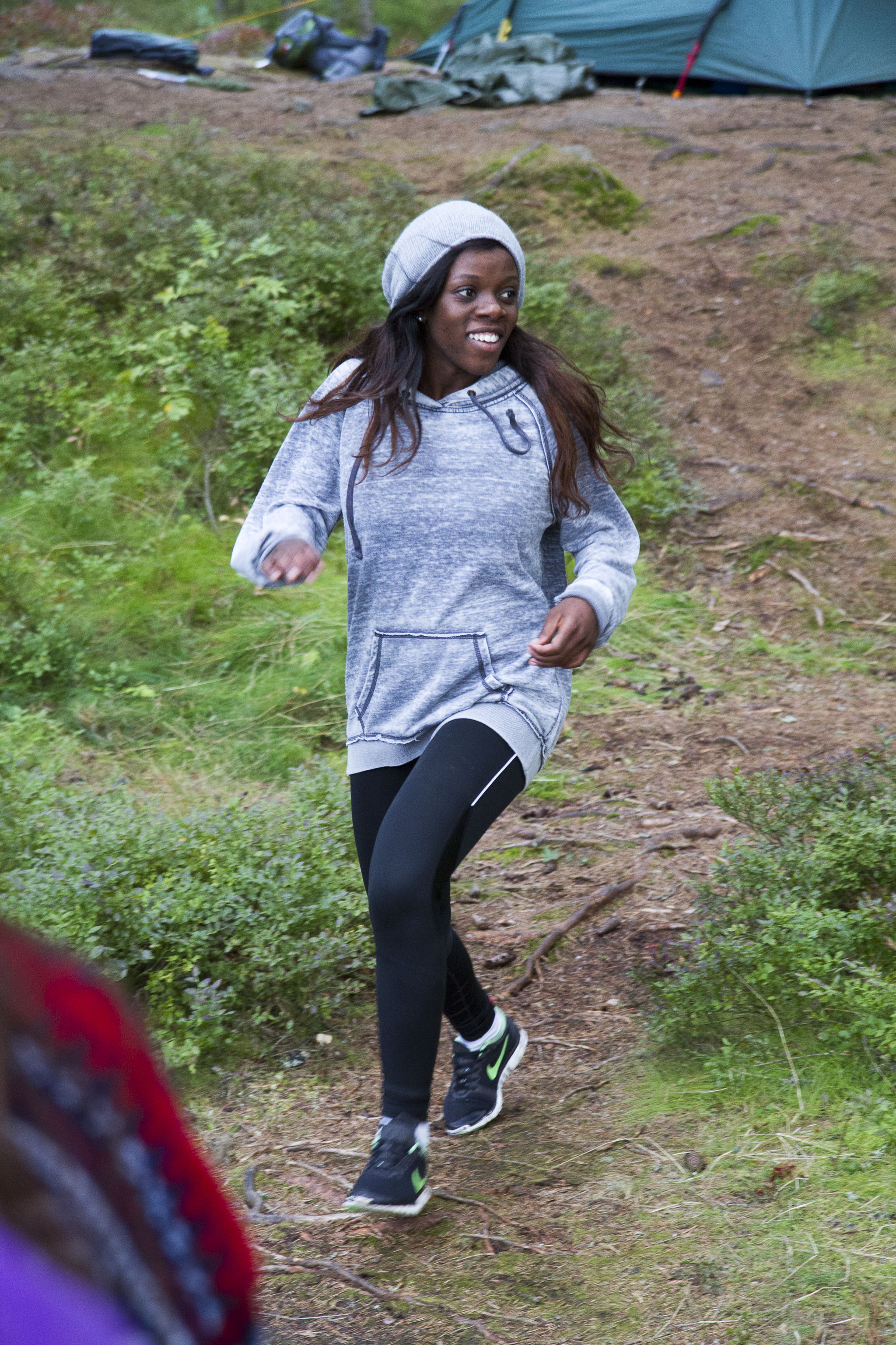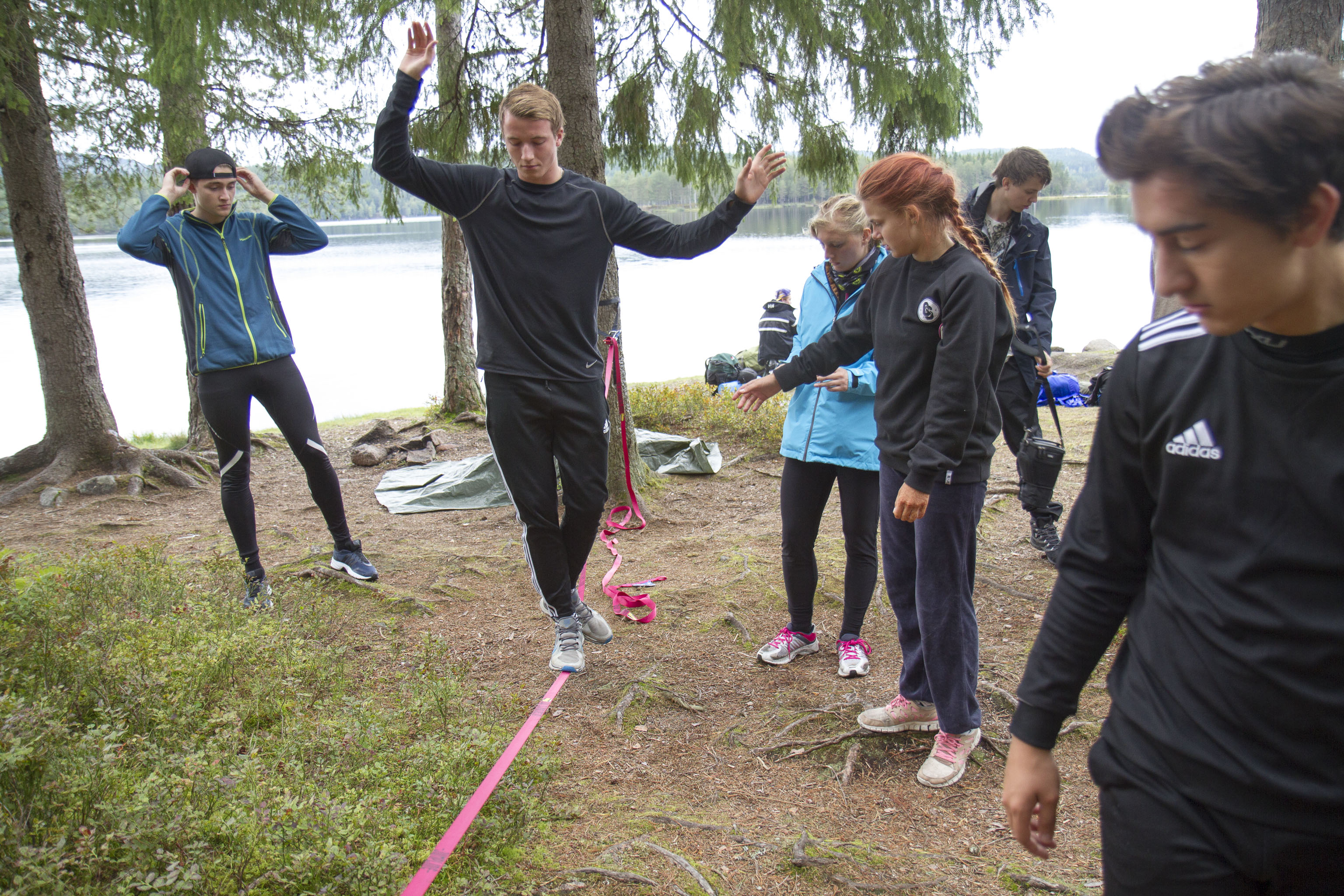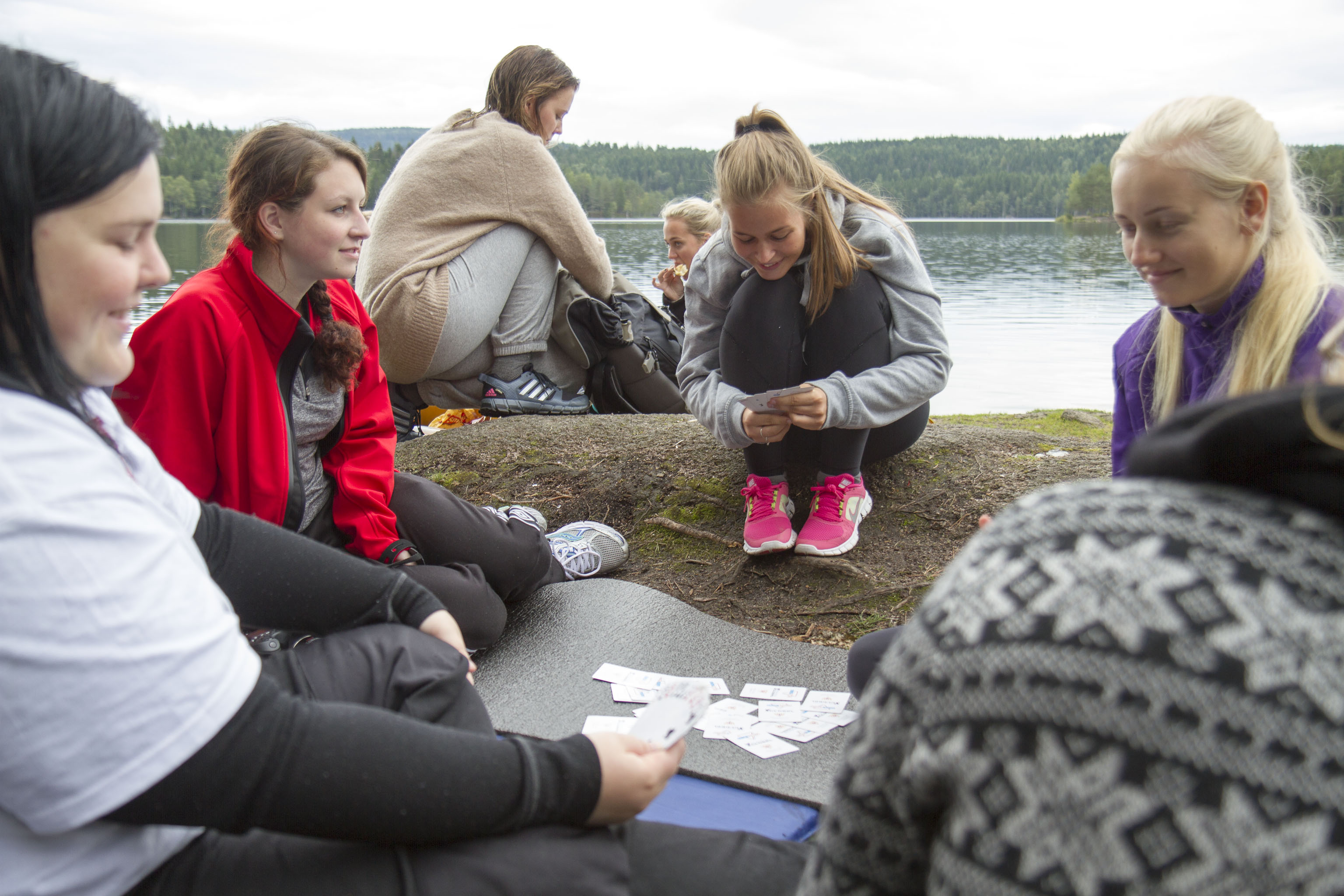 Heldigvis får vi overnatte i køysenger på hytte denne gangen.Enkelte synes fortsatt at det er bedre å sove ute. De slår opp lavo utenfor hytta eller legger seg under åpen himmel. Toppidrettsklassen tar seg en joggetur, mens noen får tid til fotball og volleyball.