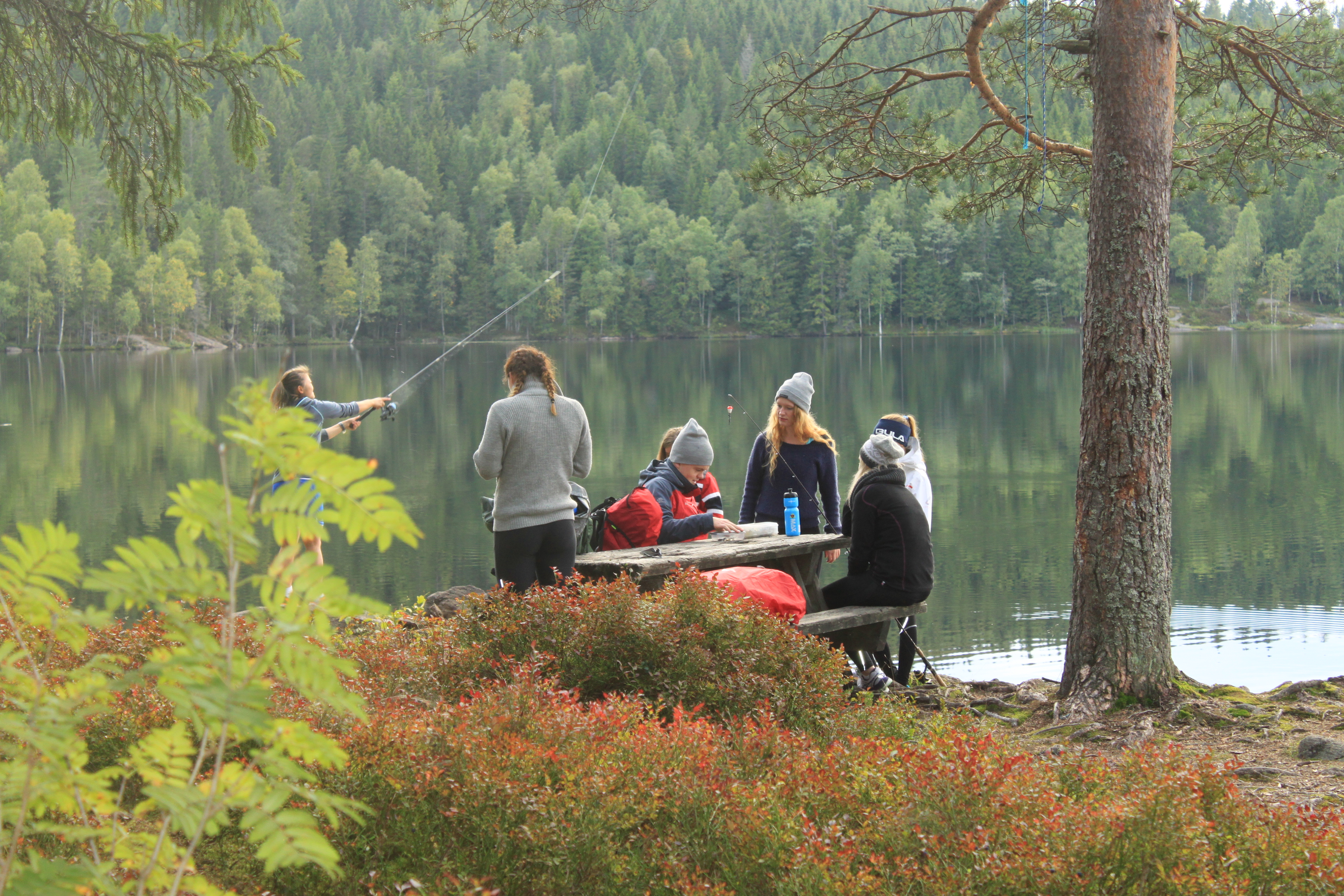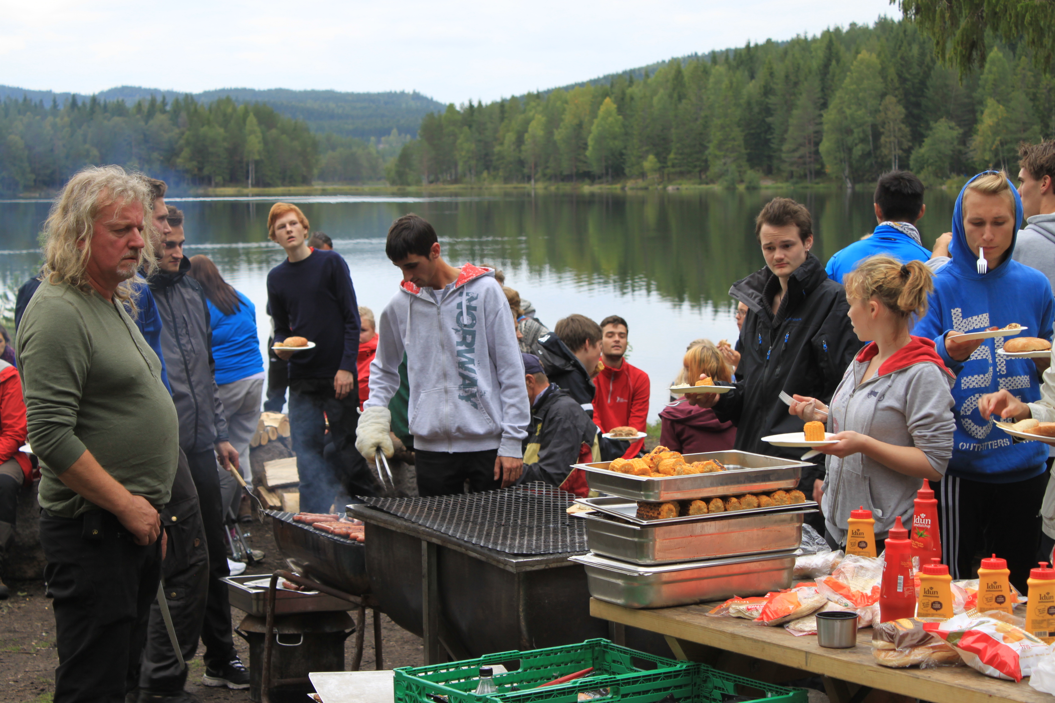 Grilling, bålkos med gitar og sang, kanopadling, fisking, fotball, volleyball og leker av alle slag.