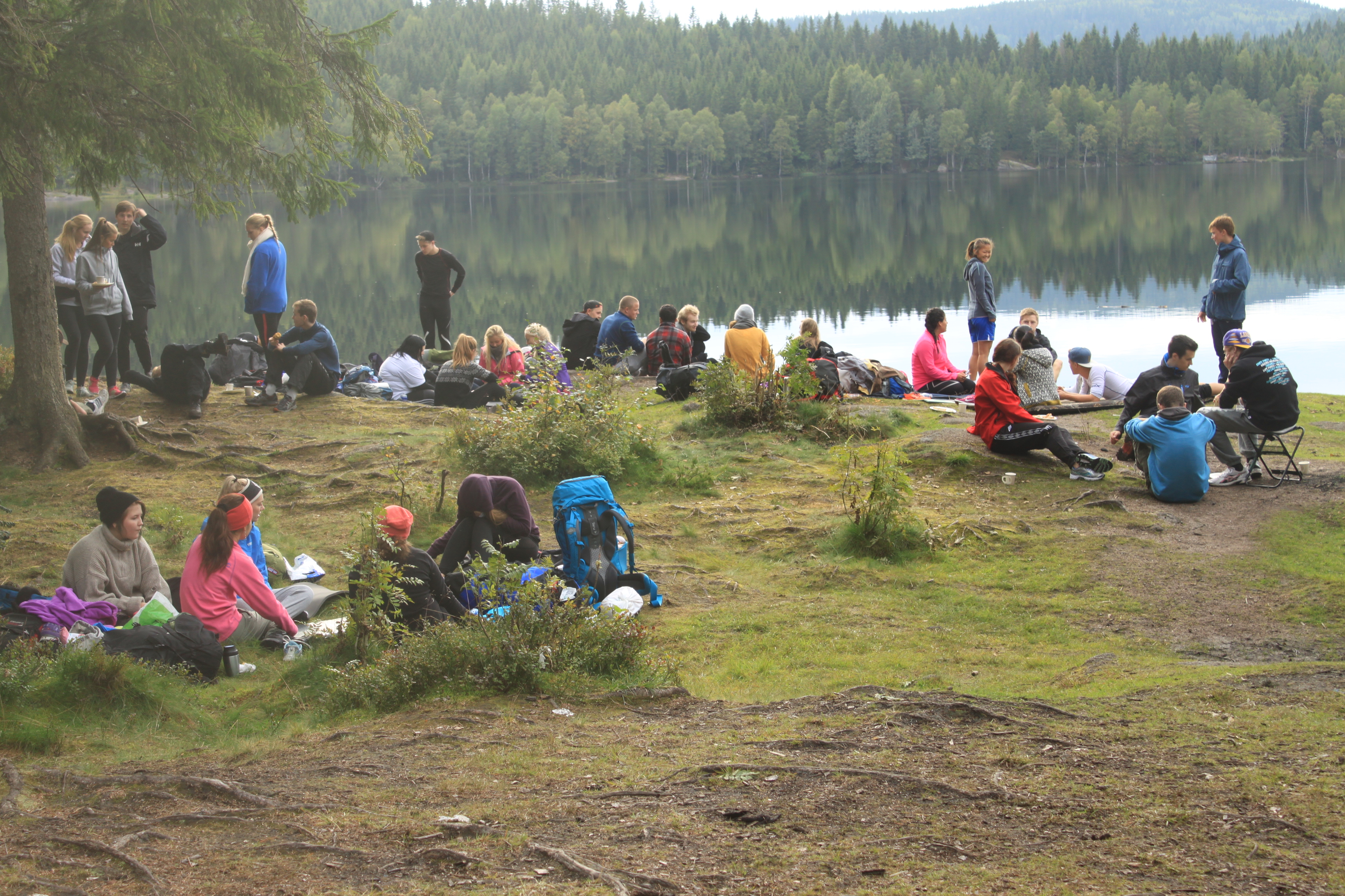 Ingenting er mer forfriskende enn et morgenbad for noen tøffe "rønnere". Lukten av havregrøt vekker resten av gjengen. Dagen blåses i gang med nydelige toner fra trompet under morgensamling. Vi pakker sammen, og legger ut på en litt lengre gåtur denne dagen.