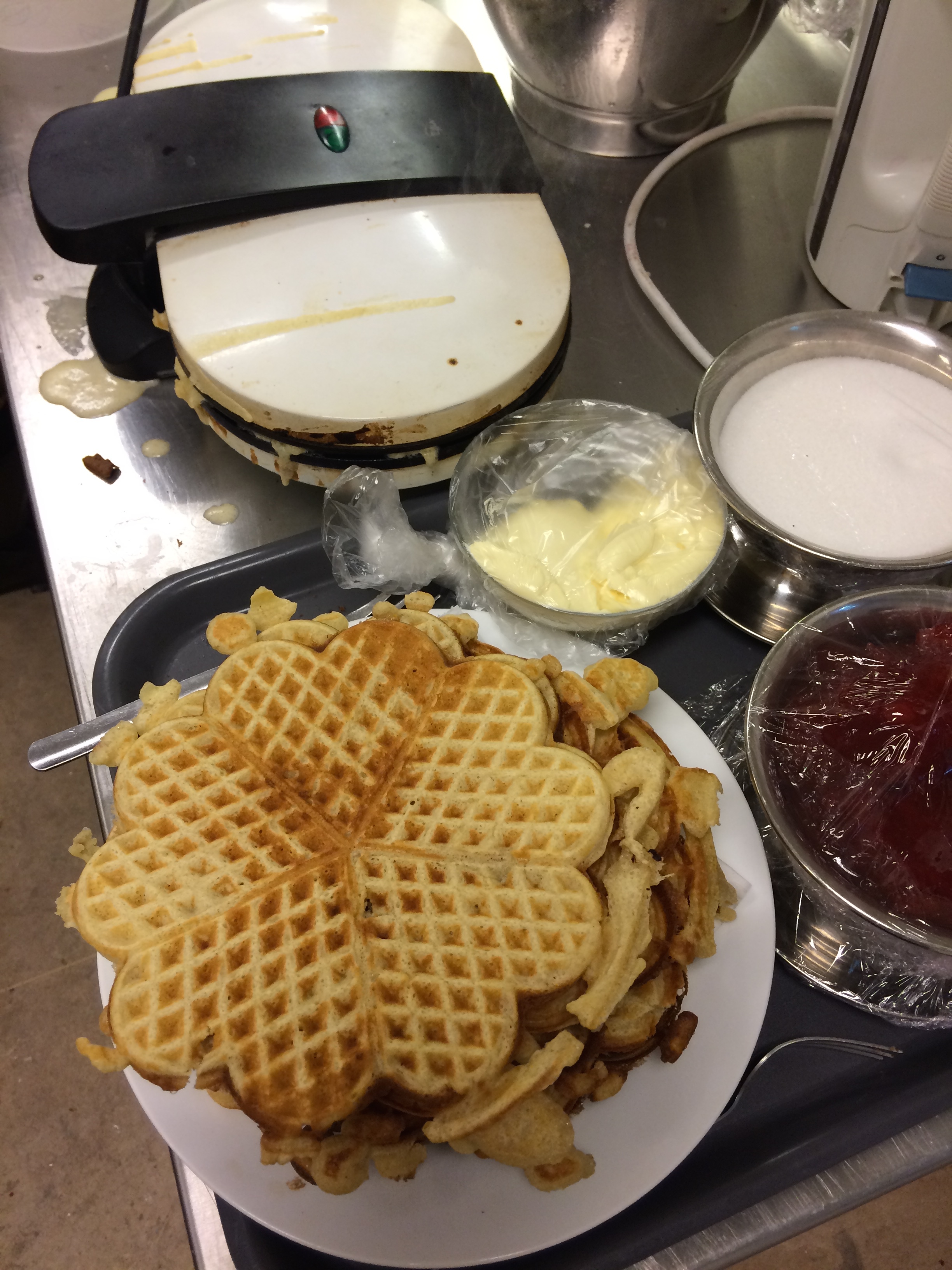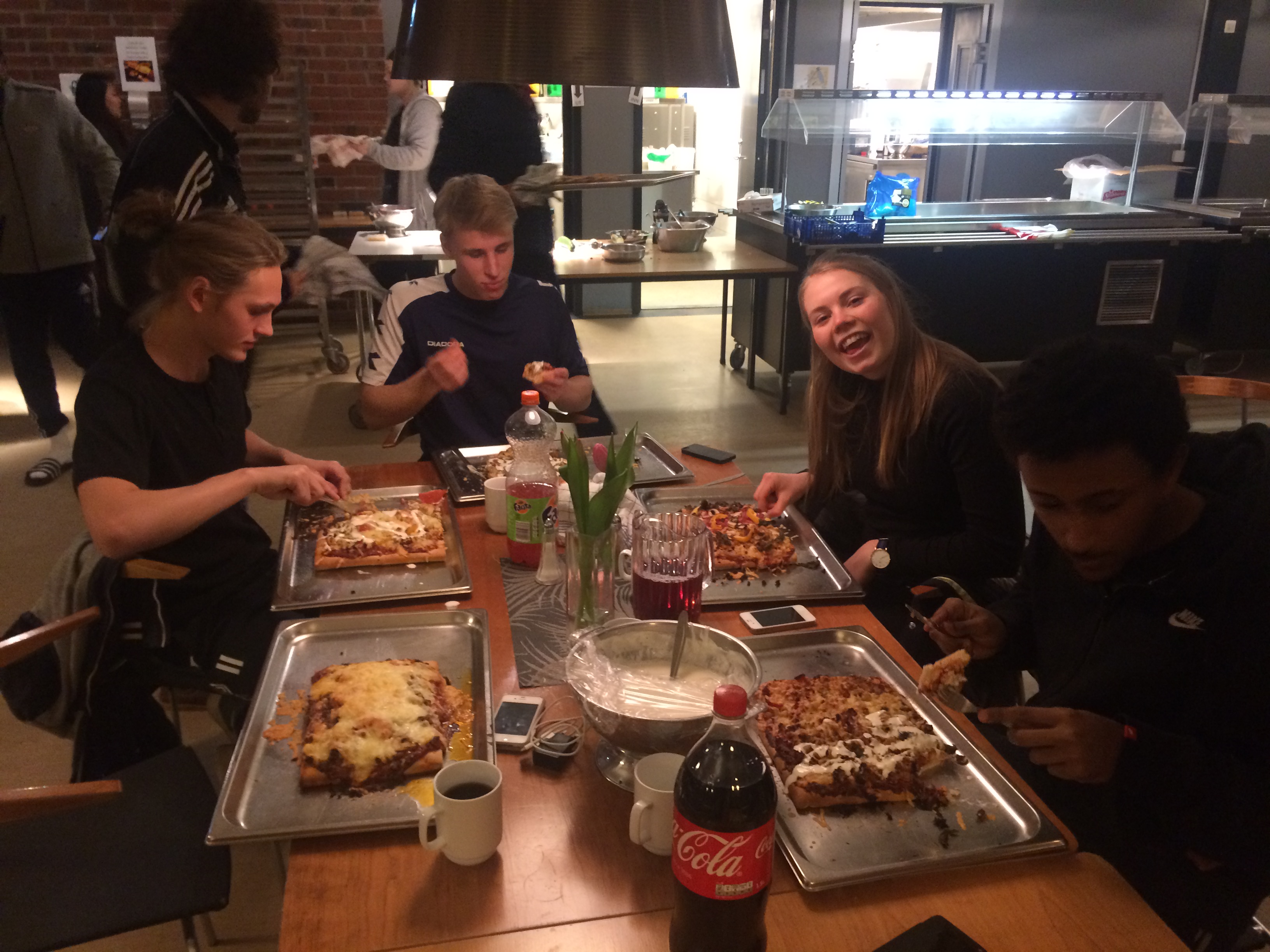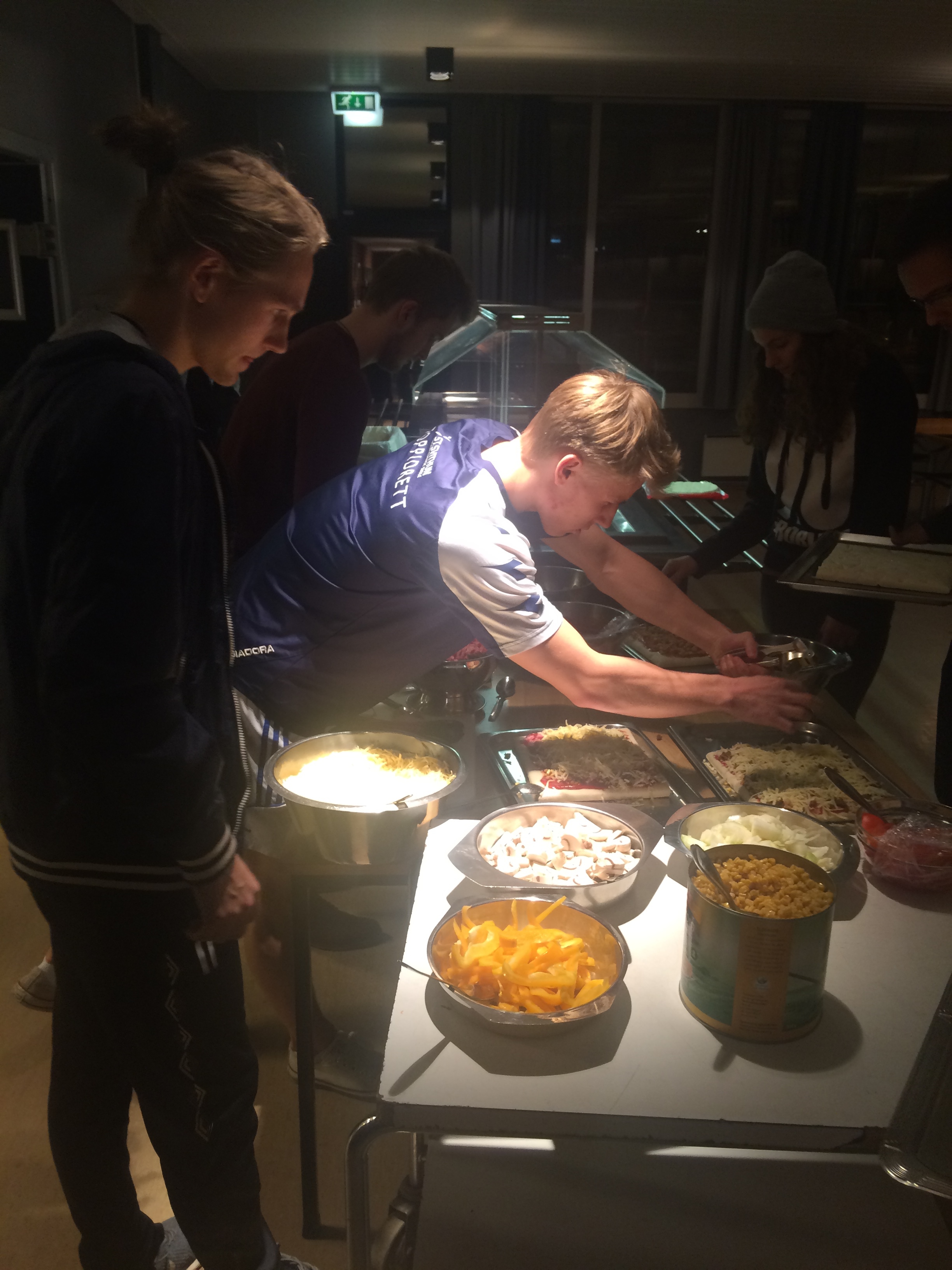 Vi har tenkt at siden resten av skolen bor på hotell må vi gjøre Rønningen om til vårt lille hotell. Kjøkkenet har servert oss både vafler, egg og bacon til frokost, pannekaker til lunsj, iskrem til dessert og tatt kjøkkentjenesten for oss...
