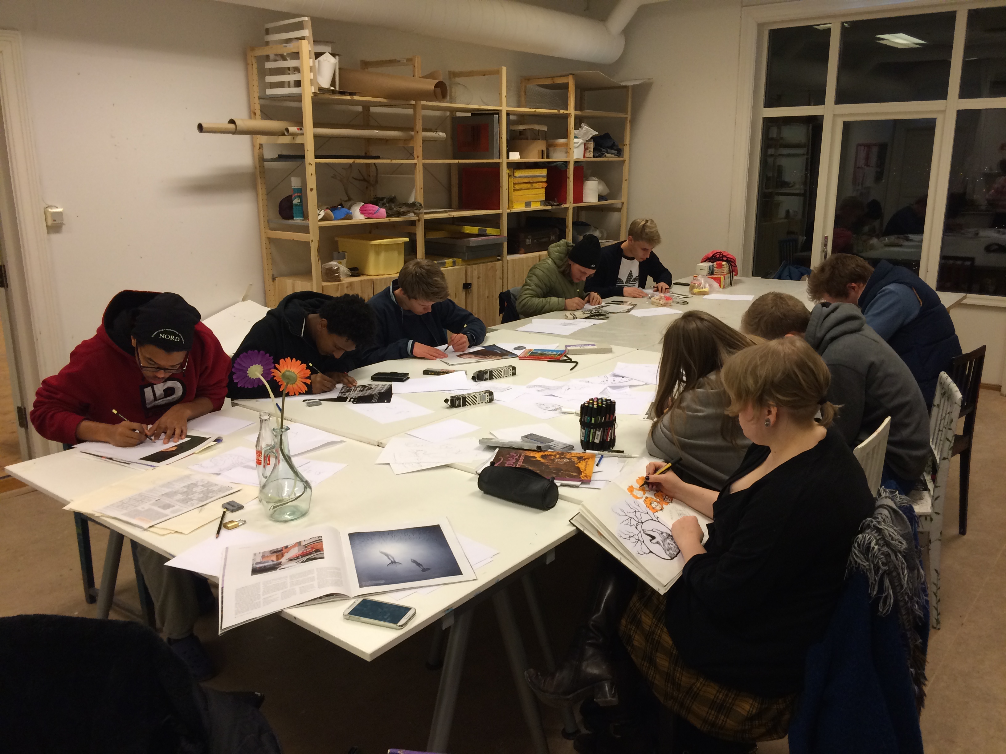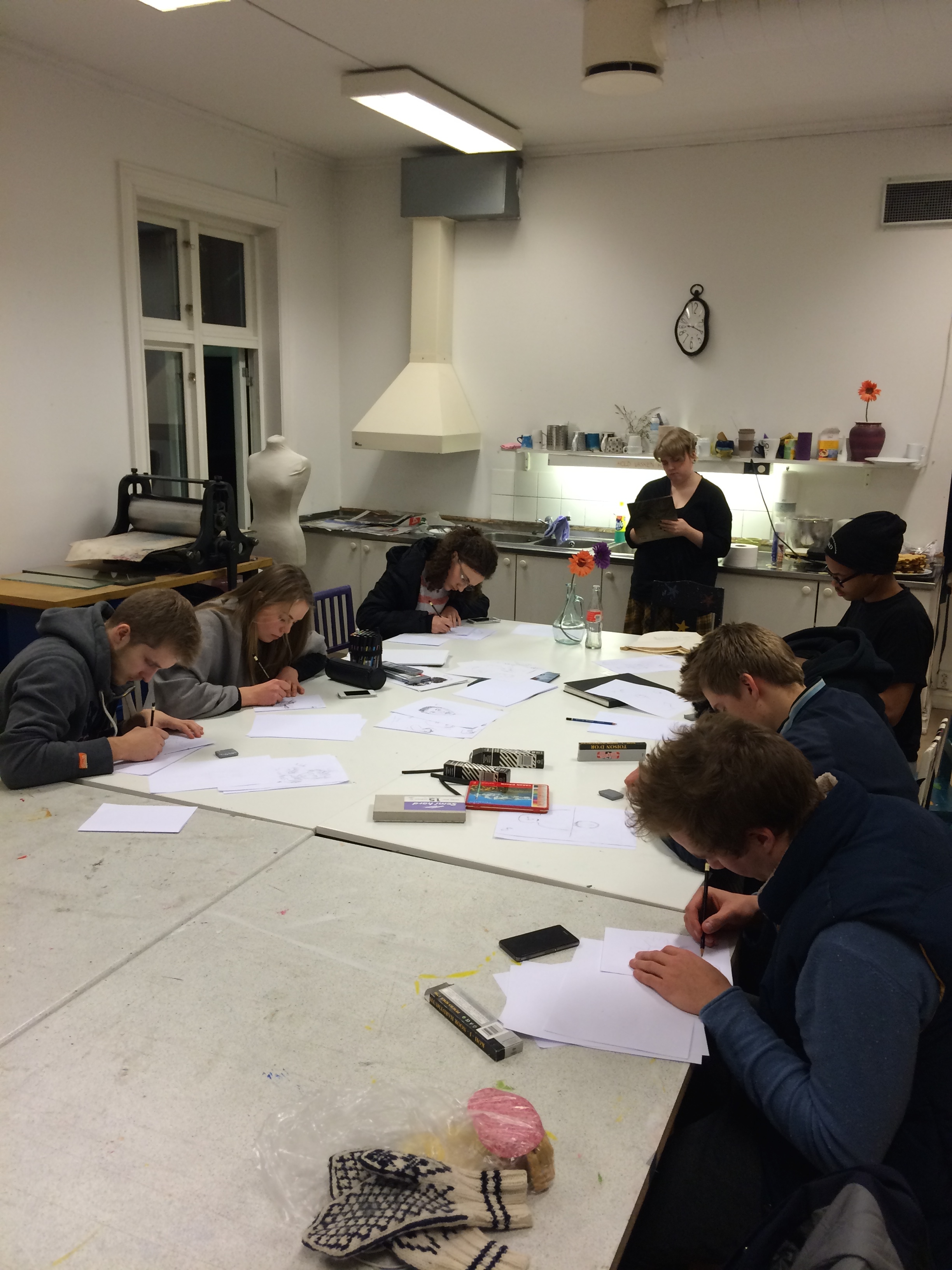 Guro knuste guttene i go cart og tegnefest med vafler viste at det var mange skjulte talent blant idrettsfolket. Det har vært fotball, basket, norsk og veldig god stemning, selv om bygget er litt stort og vi savner de andre elevene. Men vi koser oss på hjemme-alene-festen, som i dag består av pizzamaking og kino
