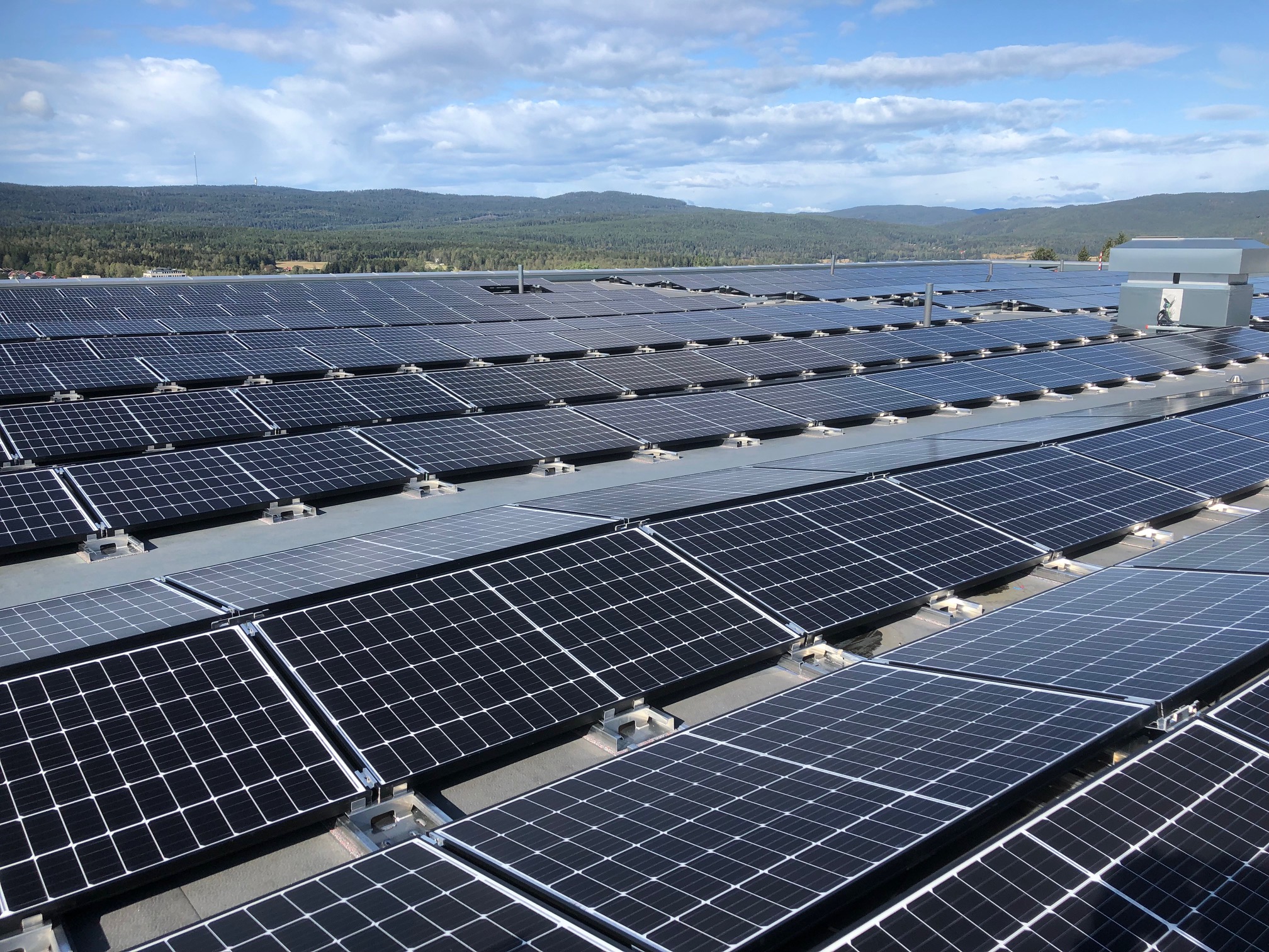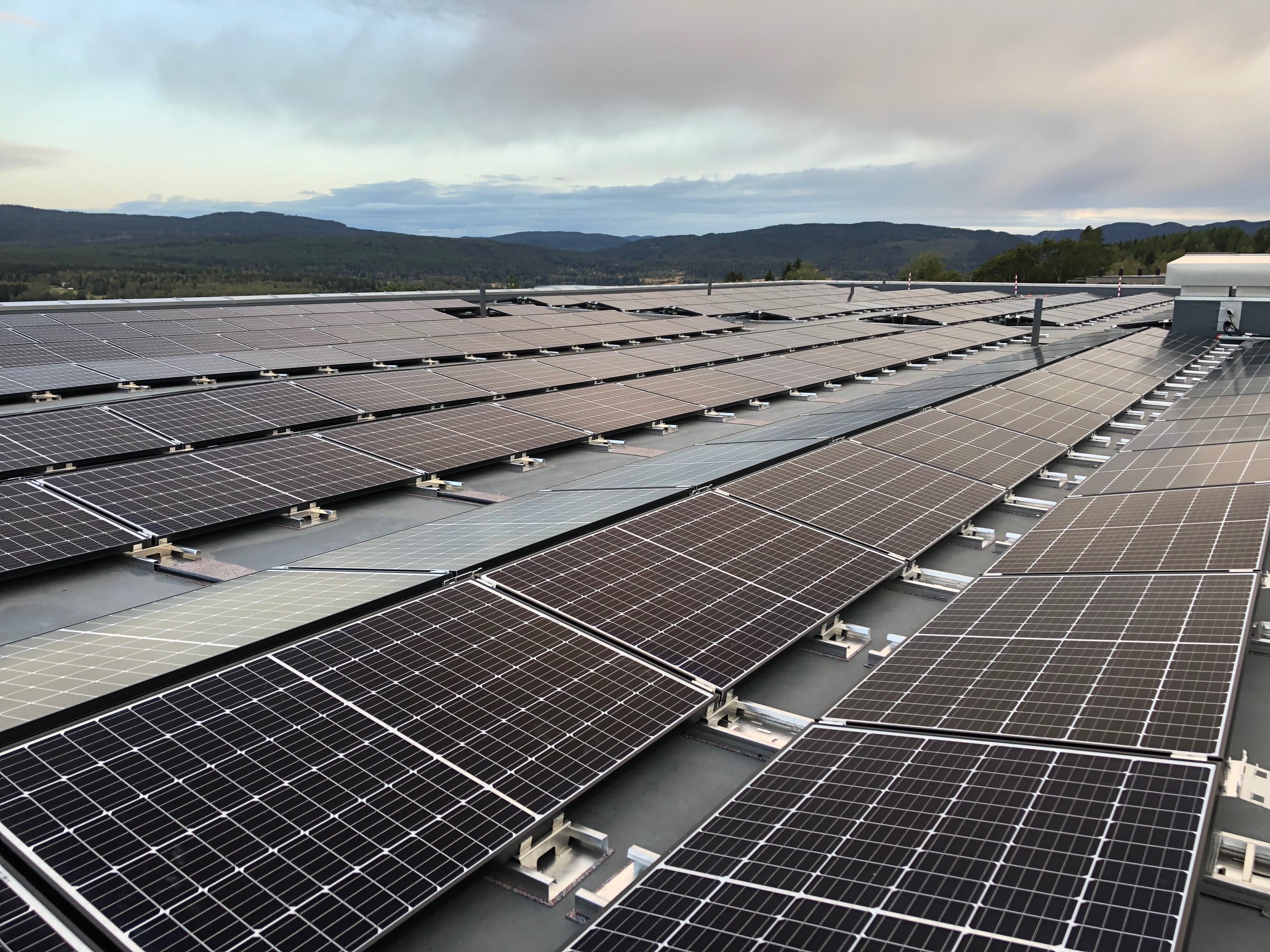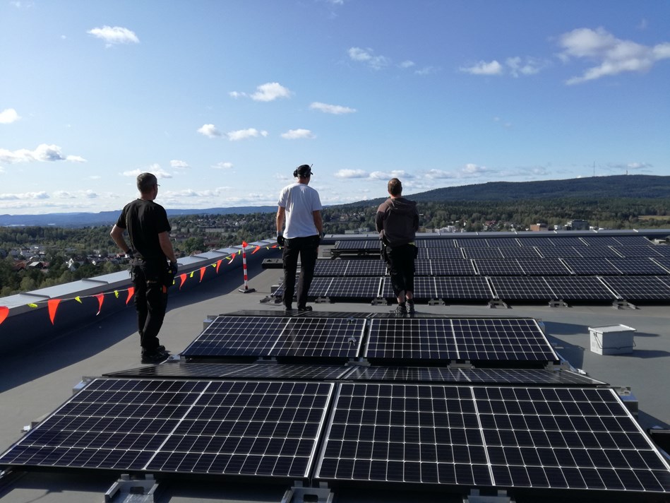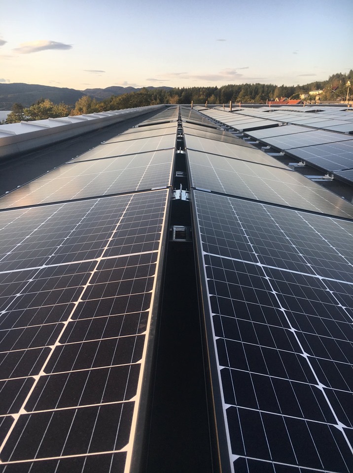 På Rønningens to største bygg er det nå installert en ny solcellepark for å mette Rønningens behov for elektrisitet.