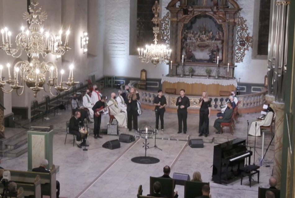 Rønningen stilte med 5 elever, 4 sangere og en bassist, og de framførte salmen Thuma Mina, slik Hugh Masakla har tolket den.