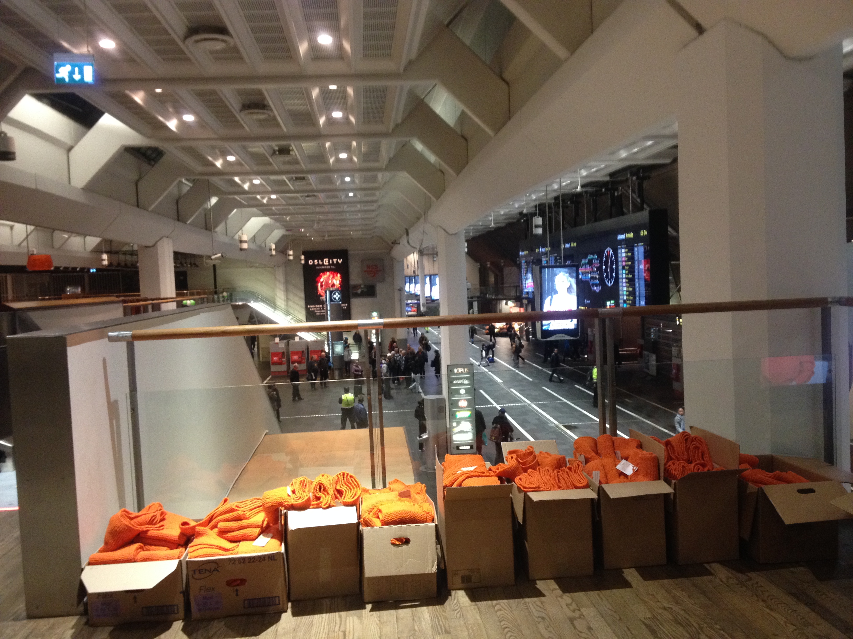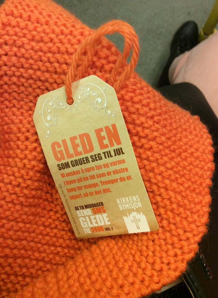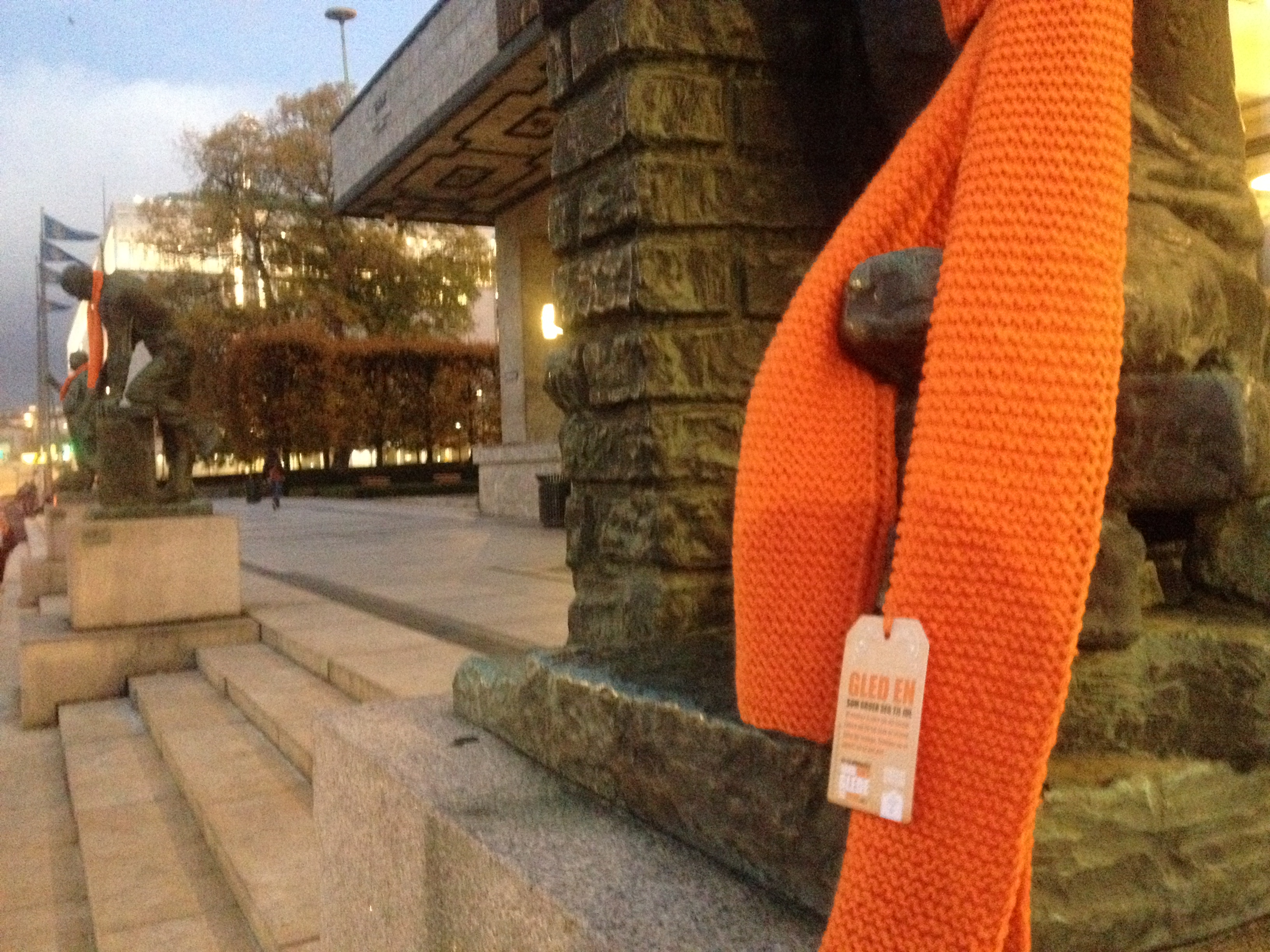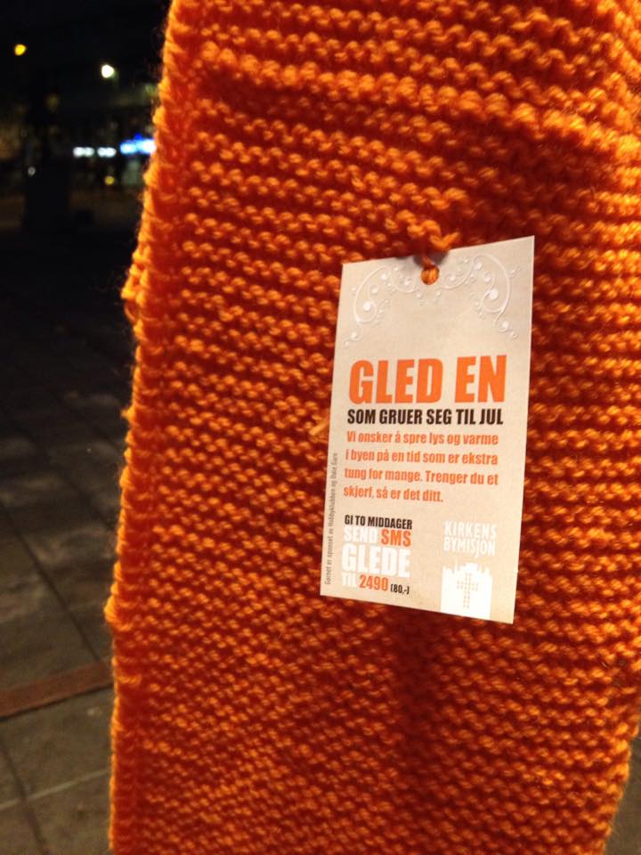 SE:Oslo fikk være med å markere starten på Kirkens Bymisjons juleaksjonen «Gled en som gruer seg til jul» ved å dele ut klementiner og henge opp orange skjerf rundt om i gatebildet i Oslo. Skjerfene hadde merkelappen: «Til en som fryser. Hilsen Kirkens Bymisjon». I Oslo ble over 500 skjerf synlig i morgenrushet, blant annet på statuer og stolper.