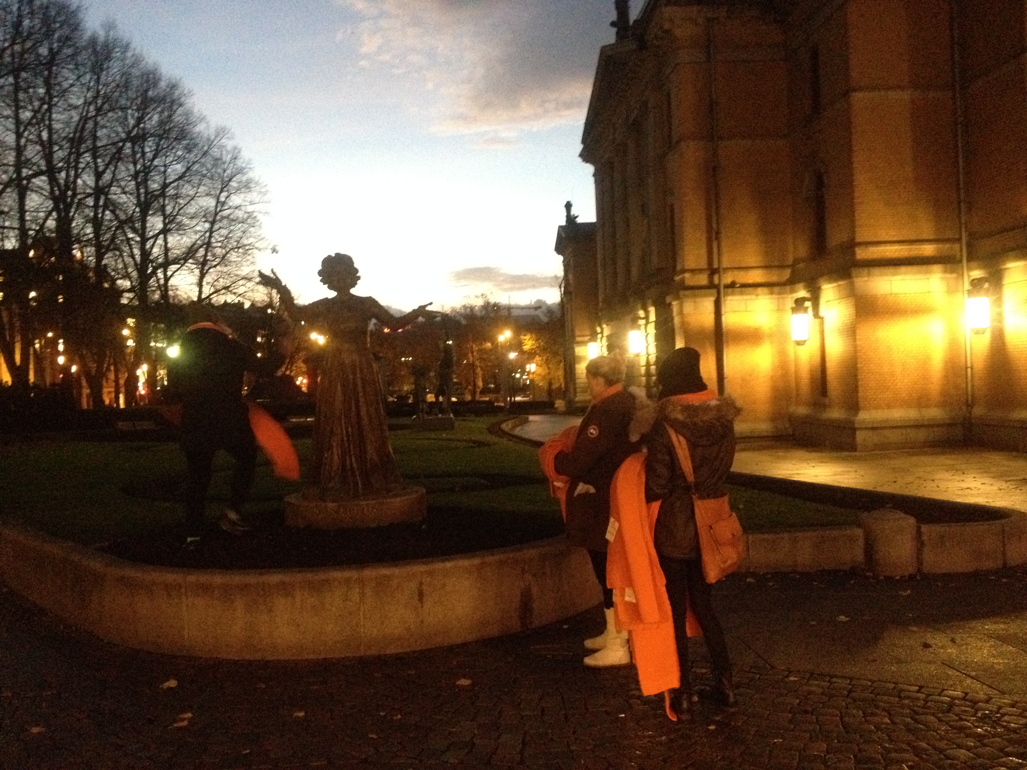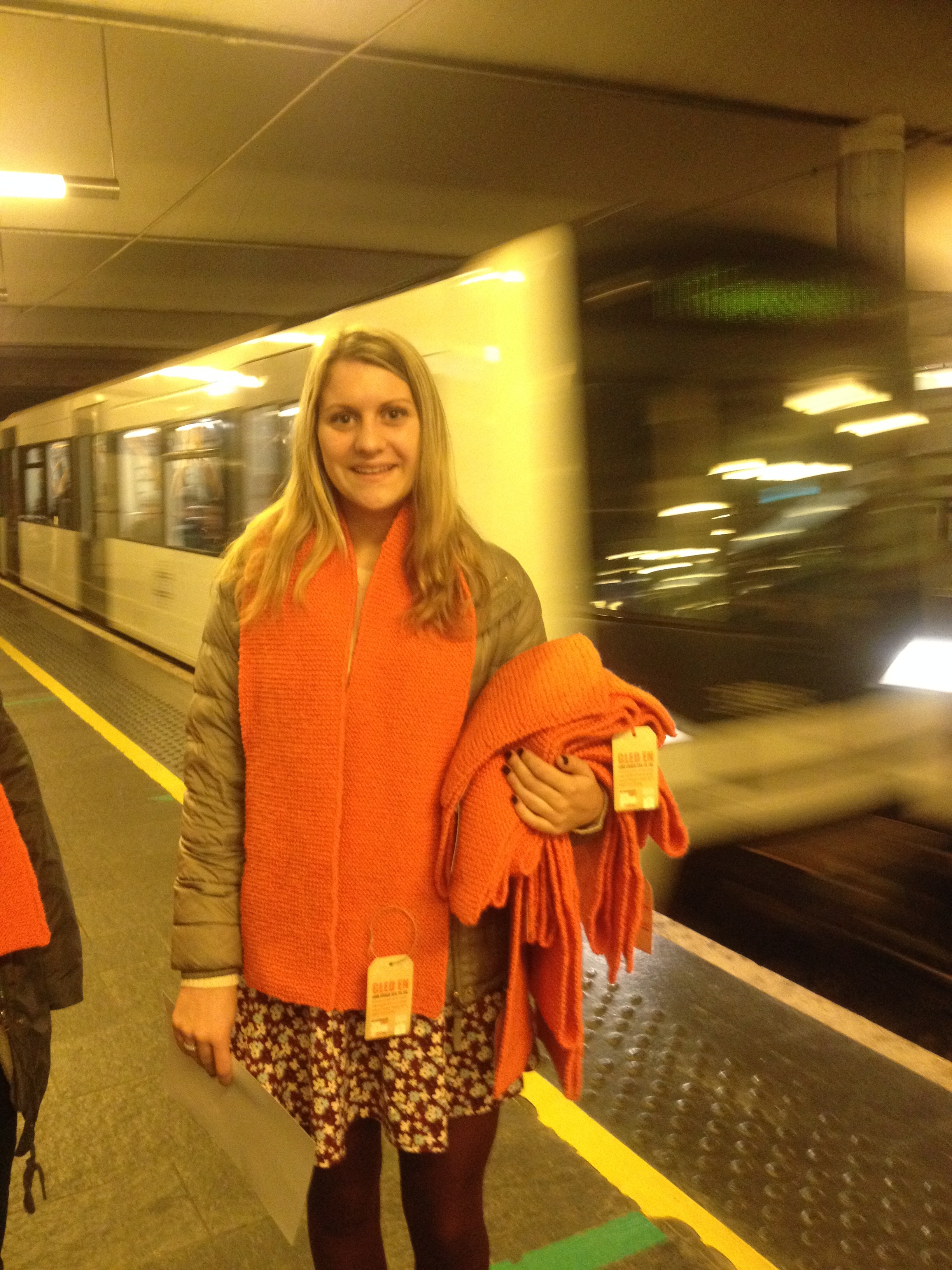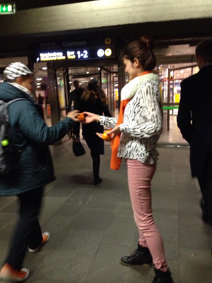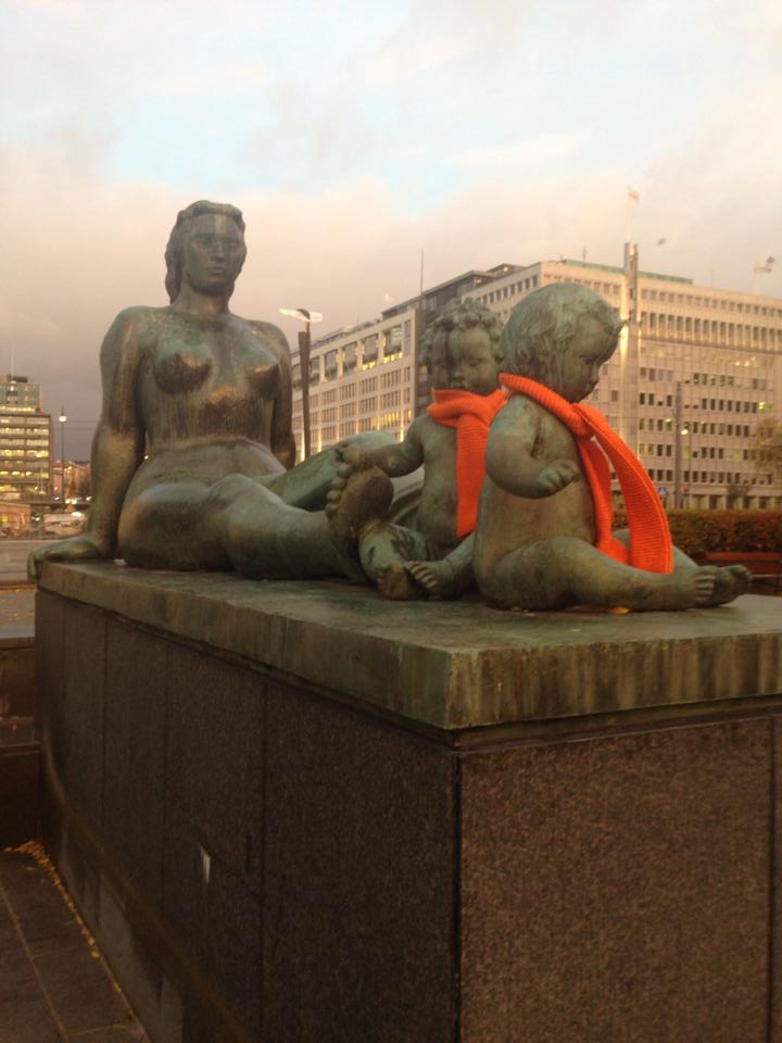 SE:Oslo fikk være med å markere starten på Kirkens Bymisjons juleaksjonen «Gled en som gruer seg til jul» ved å dele ut klementiner og henge opp orange skjerf rundt om i gatebildet i Oslo. Skjerfene hadde merkelappen: «Til en som fryser. Hilsen Kirkens Bymisjon». I Oslo ble over 500 skjerf synlig i morgenrushet, blant annet på statuer og stolper.