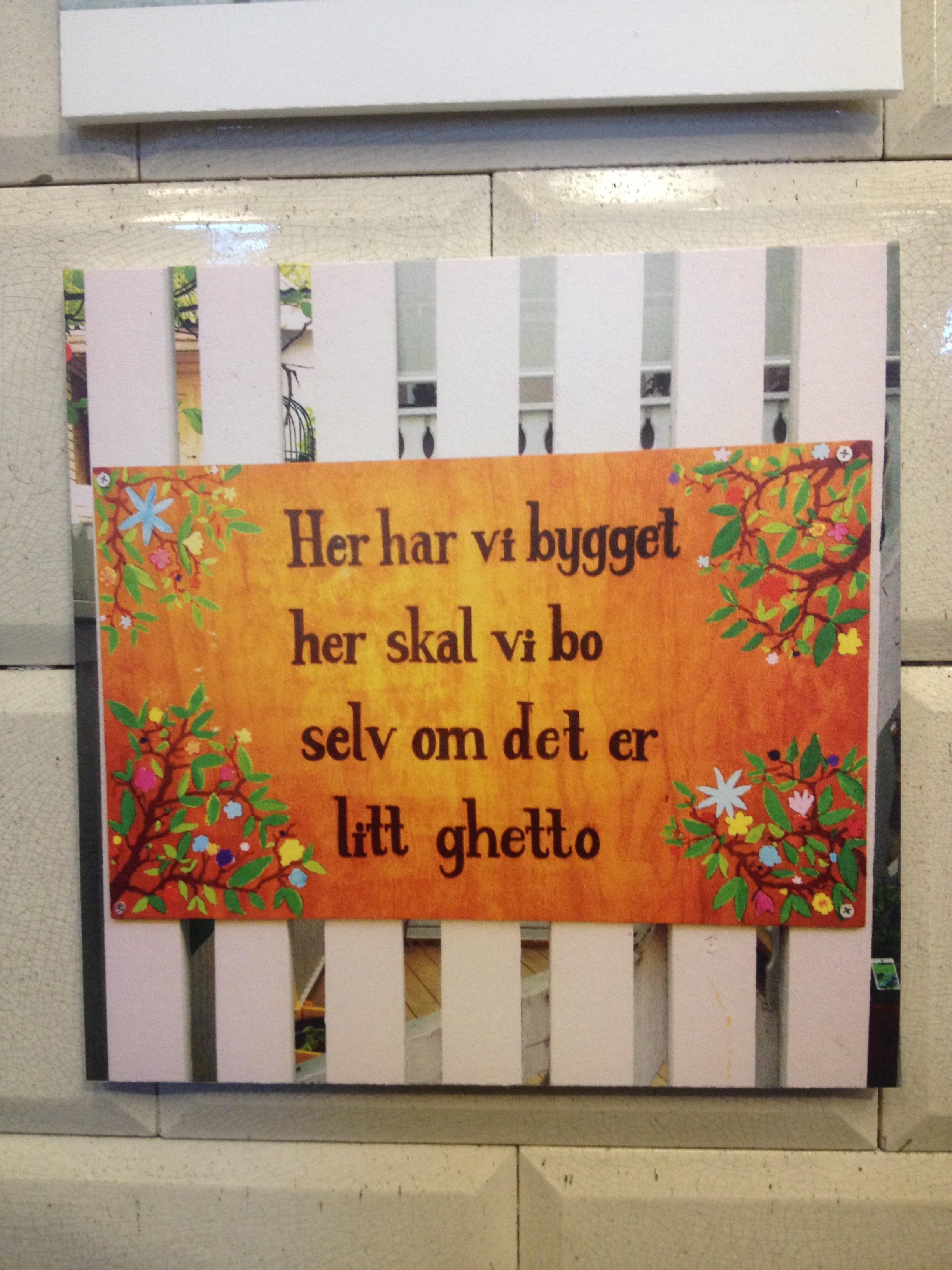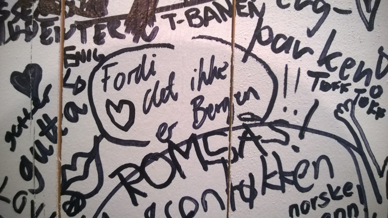 På utstillingen var det blant annet en vegg hvor vi kunne skrive hva vi likte best med byen vår. Vi måtte smile av at noen mente det var "hestene" og "at det ikke er Bergen"...