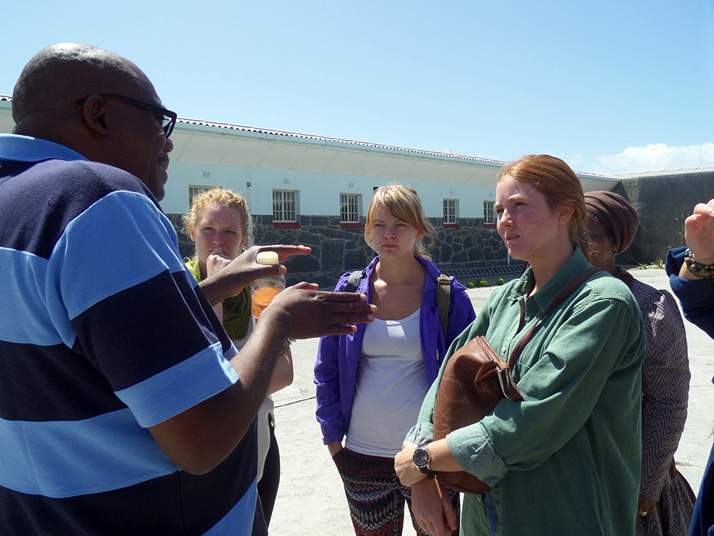 Vi inviterte med Eunice og noen av ungdommene på vårt besøk til Robben Island. Gjennom vår kontakt med den tidligere politiske fangen, Thulani Mabaso, fikk vi en egen tur, som også inkluderte et besøk inne i Nelson Mandelas celle. Dette er ikke lenger vanlig på turene til Robben Island, da turister har tatt med seg eiendeler utstilt i cella.