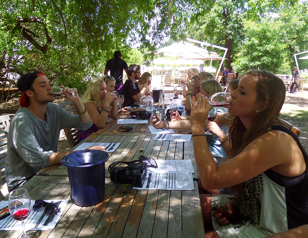 I Cape Flats besøkte vi YMCAs Helse og HIV Aids-programmer, før vi hadde dugnad på deres nylig overtatte leirsted. Dagen derpå dro vi opp i fjellene rundt Stellenbosch og Franshoek, og besøkte vinfarmen Solms Delta som har innført en sosial profil for sine ansatte, med sikker arbeidsplass, kor og band, barnehage, skole og egen helsearbeider. Dette er uvanlig i disse distriktene cg setter en ny standard for arbeidsmiljø i denne bransjen. Vi smakte også på vinen, og den var svært god.