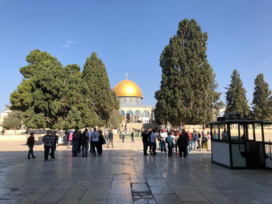 At konfliktnivået er høyt på Haram al Sharif er helt tydelig. Enkelte jødiske besøkende ønsker å komme nærmere det opprinnelige tempelet enn klagemuren på nedsiden, og kommer inn på området bevoktet av israelske soldater. Muslimene regner dette som en provokasjon, men kan ikke gjøre noe med det, da israelske militære kontrollerer hele området rundt Haram al Sharif. Her er imidlertid jødiske besøkende den dagen vi besøkte området.