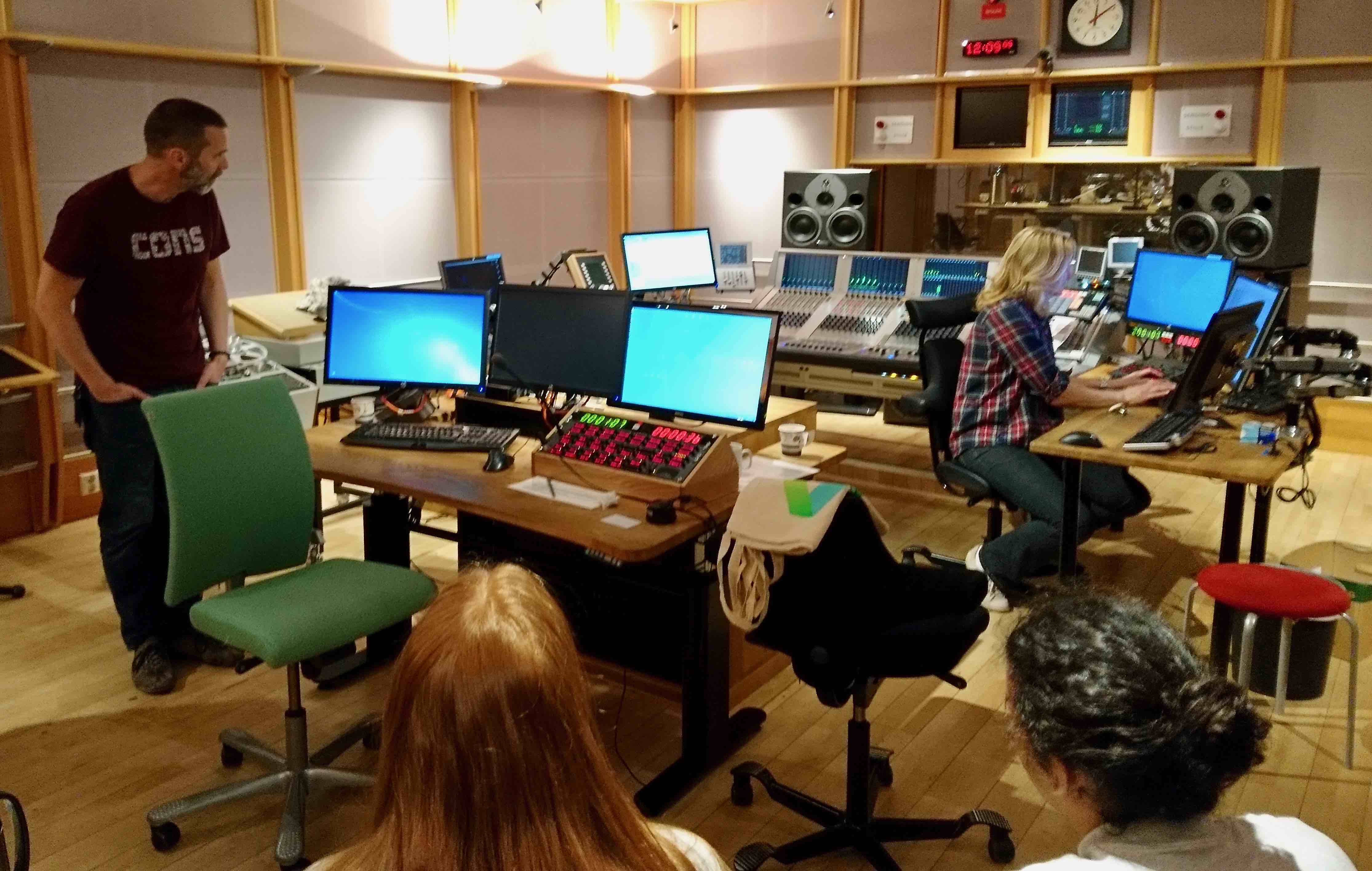 Vi fikk besøke de viktigste lydstudioene og fikk forklart hvordan man jobber i ulike settinger .