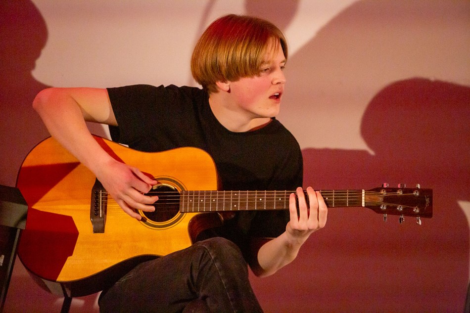 - Jeg angrer ikke et sekund på at jeg valgte å gå på Rønningen! Jeg lærte masse nytt på gitar, musikkproduksjon og samspill. Rønningen har dyktige og engasjerte lærere og ikke minst medelever som deler samme interesse. Det ble det et veldig hyggelig og godt fagmiljø av, forteller Jens Idsø Andersen.