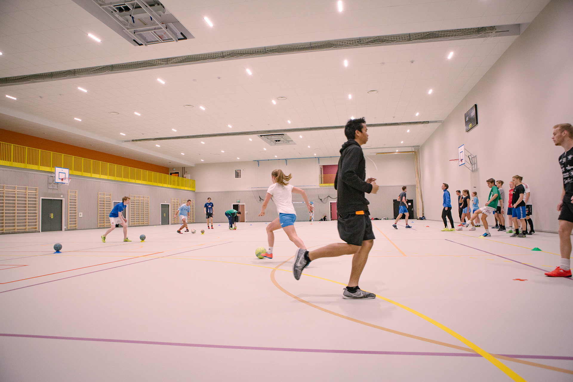 Under fotballbanen skjuler det seg topp moderne klasserom, treningsfasiliteter og en 1000 m² idrettshall. En liten gressplen unna ligger vårt flotte nye internat, med kjøkken og elevrom i hotellklasse.