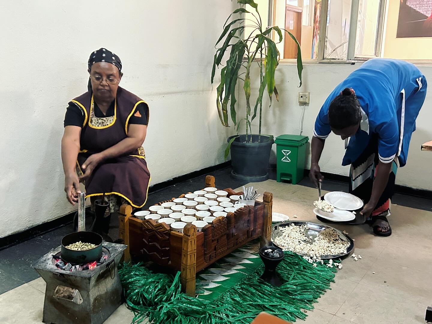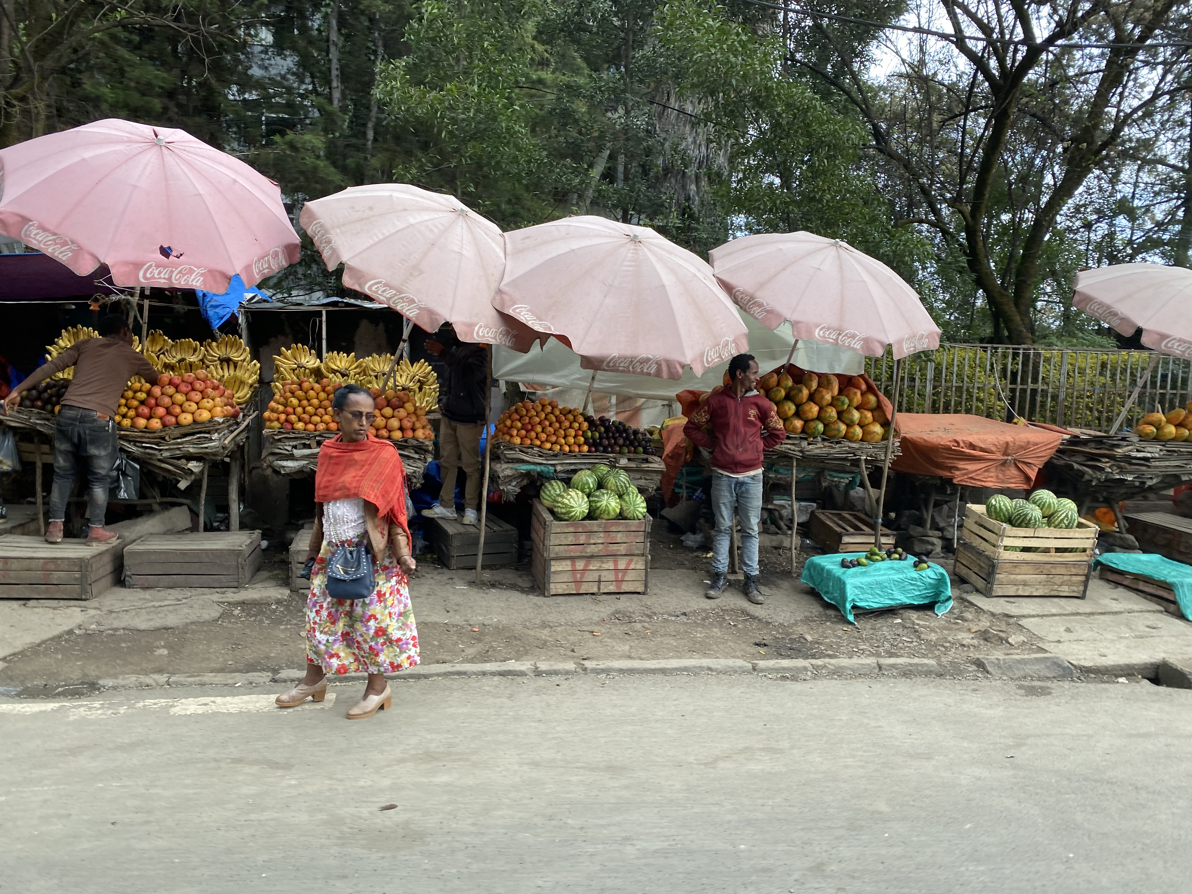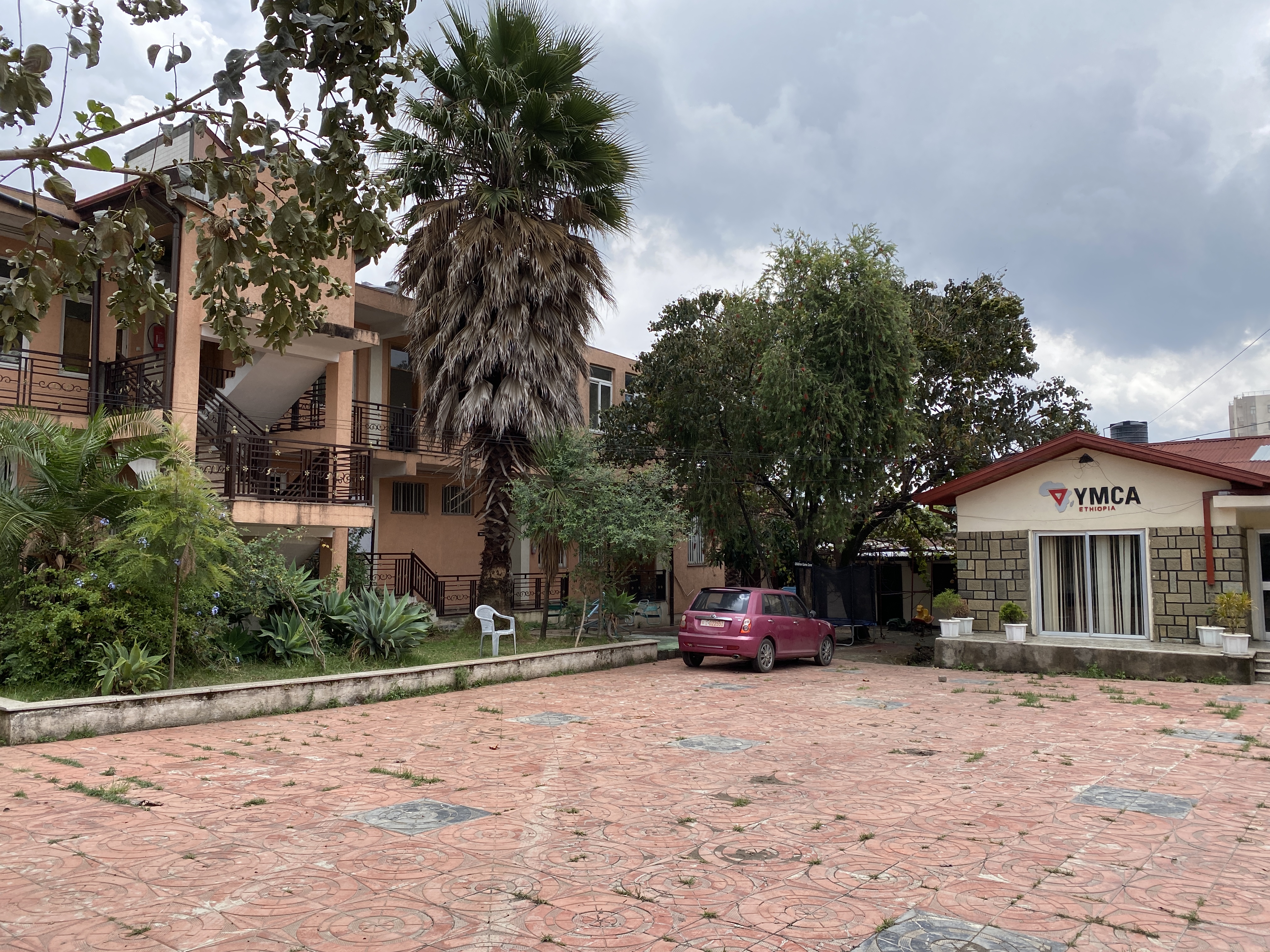 Vi bor på konferansesenteret til Røde kors i Addis Ababa, og har minibusser og sjåfør fra Røde Kors. Her er sikkerheten godt ivaretatt, det er fine uteområder innenfor et bevoktet område, stor matsal med buffet hver dag om vi skulle ønske å bruke denne, og etiopiske markeder rett rundt hjørnet.